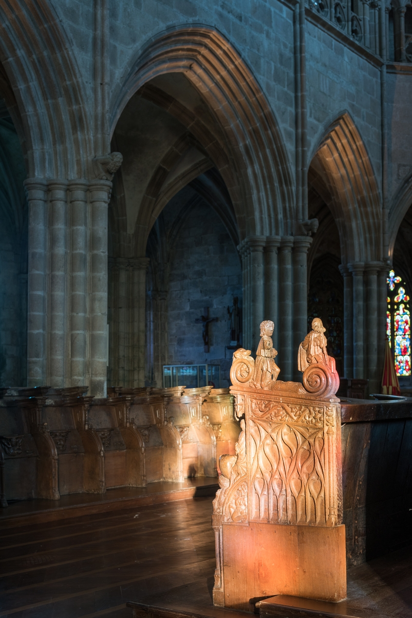 Les stalles dans le choeur, rangs sud, effet de lumièreImmatriculation