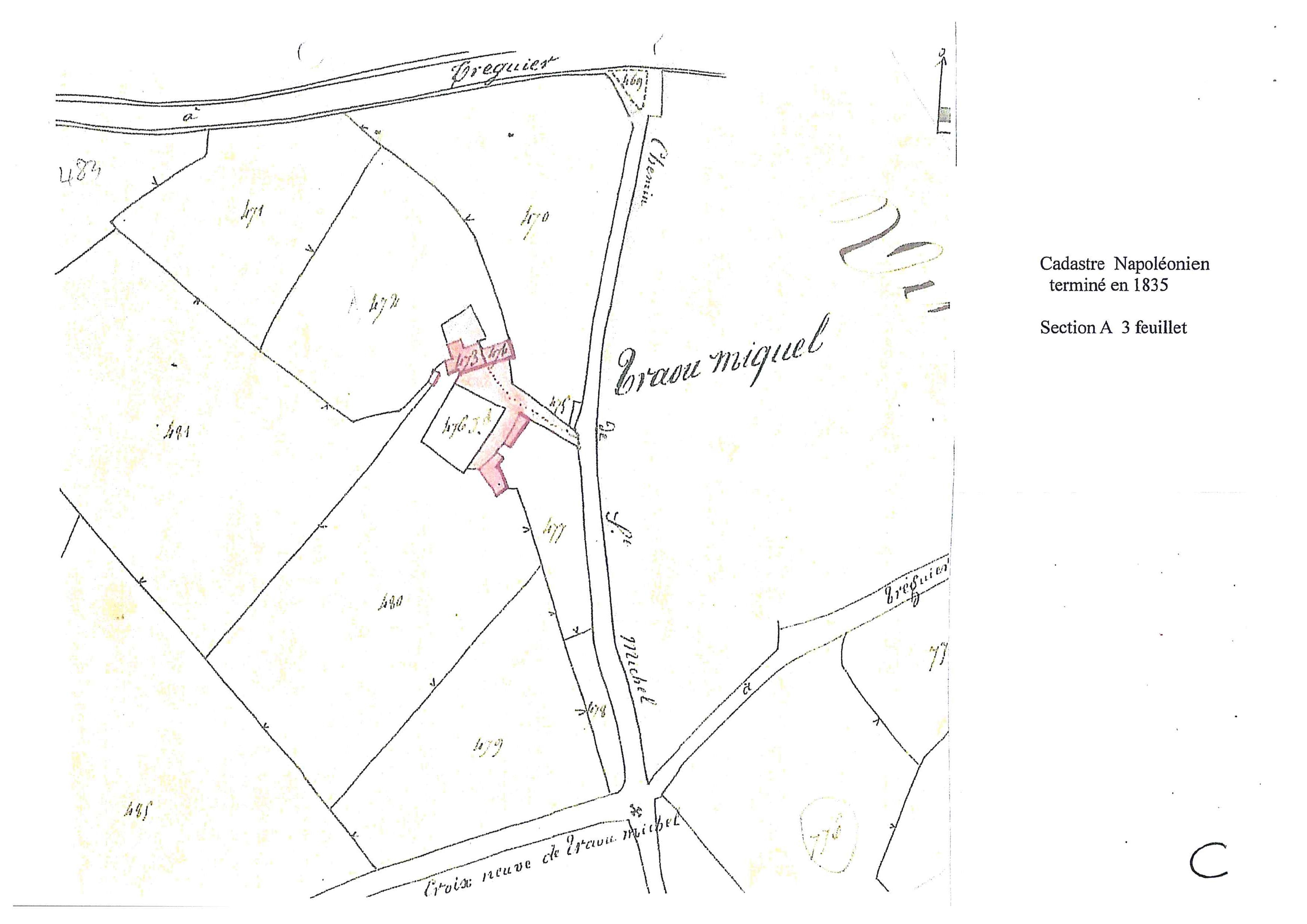 Pièce C : extrait du cadastre de 1835. Ce document montre le tracé des bâtiments à cette époqueImmatriculation