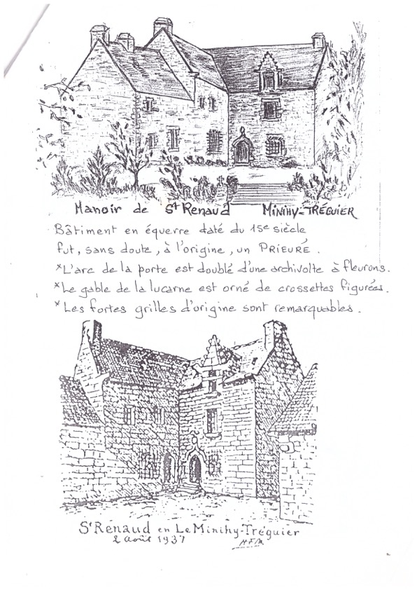 Minihy-Tréguier : manoir de Saint-Renaud, dessins dont l'un de Henri Frotier de La Messelière daté du 2 août 1937 (collection particulière)Immatriculation