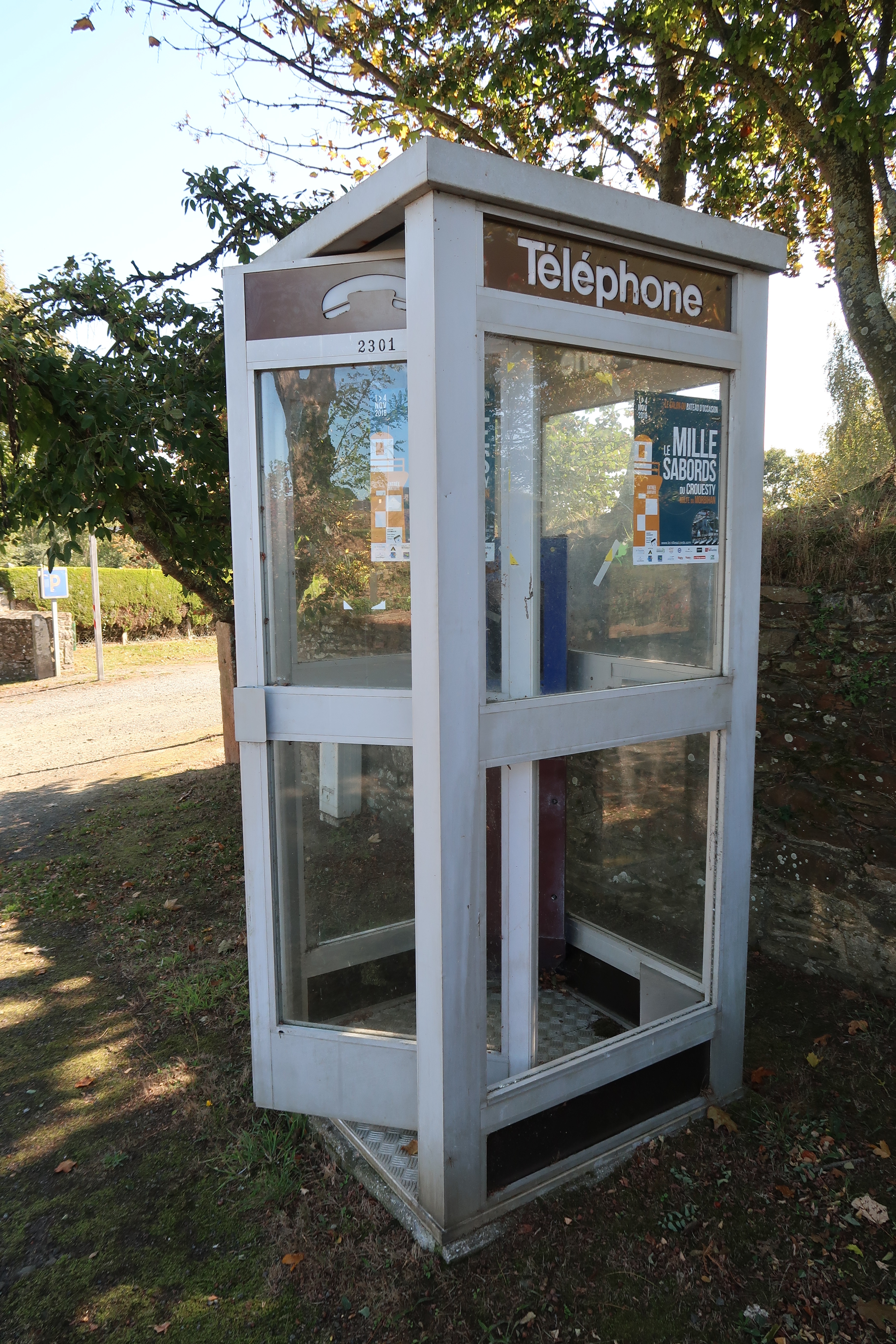 Minihy-Tréguier, rue de l'Église : cabine téléphonique (publiphone type TE 80 datable des années 1980)Immatriculation