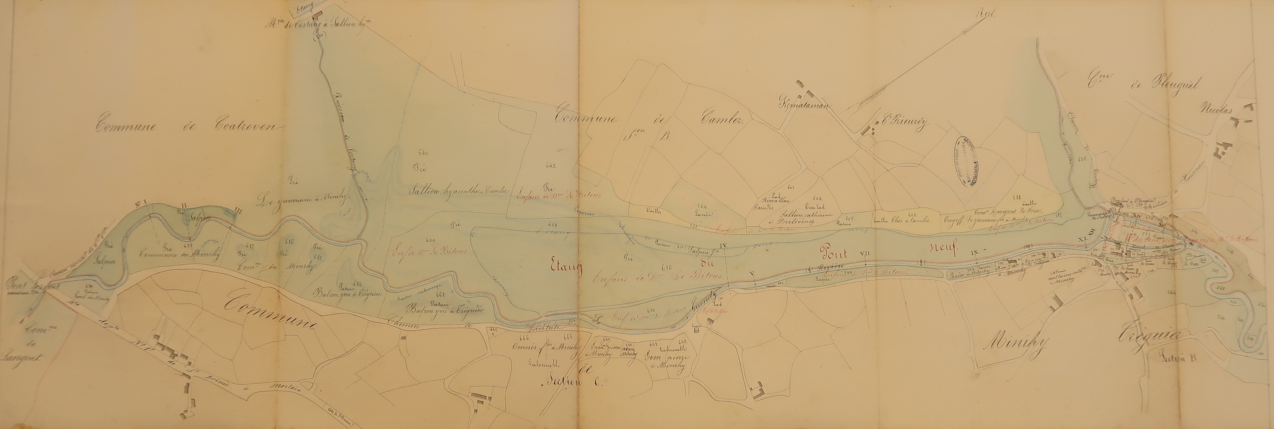 X Minihy-Tréguier, Camlez, Plouguiel. Etang et moulin du Pont-Neuf 1851-1900 ;