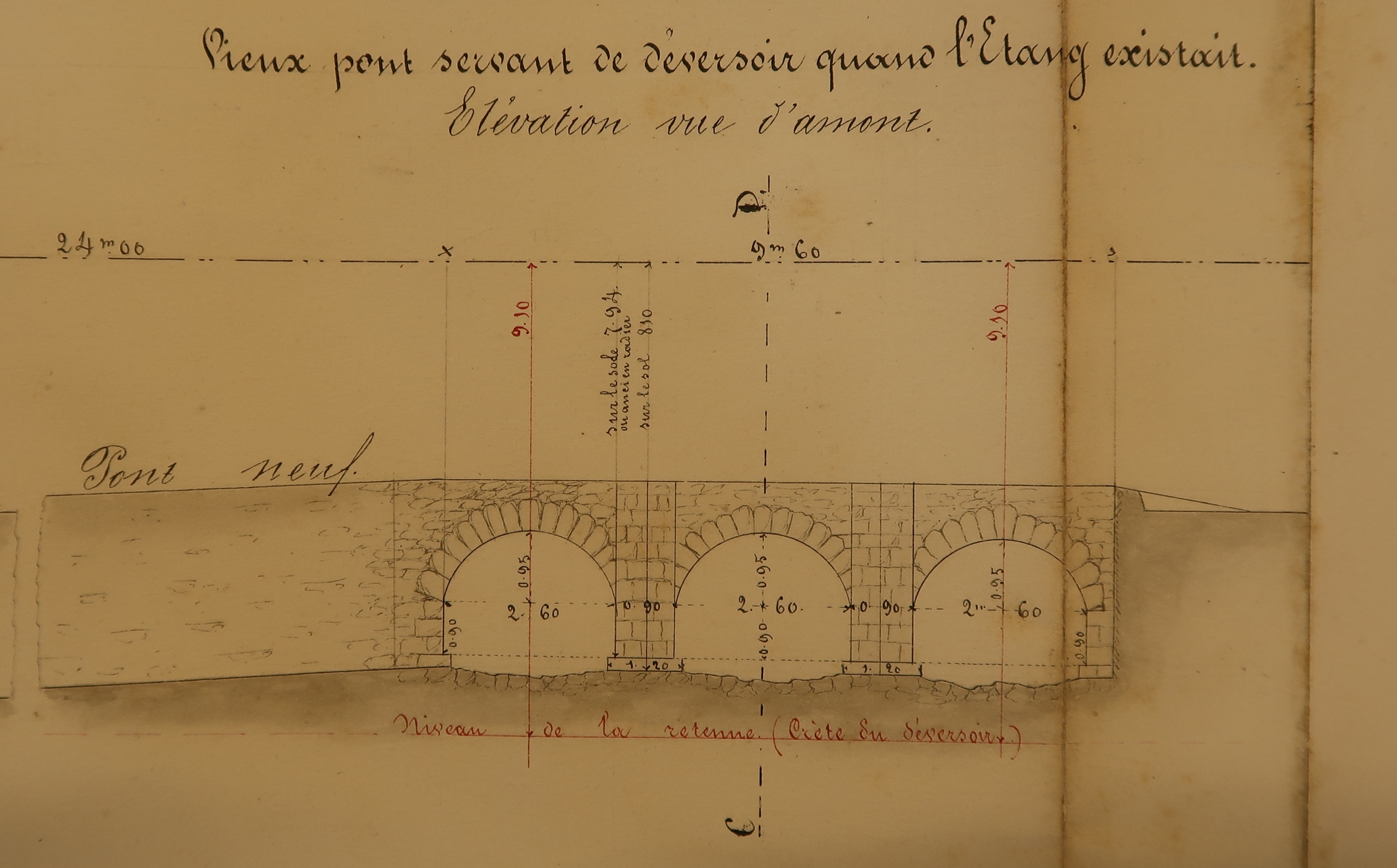 Réglementation d'office du Moulin du Pont Neuf à Minihy-Tréguier : dessins (Archives départementales des Côtes-d’Armor : 8 S 6 Guindy et affluents)-