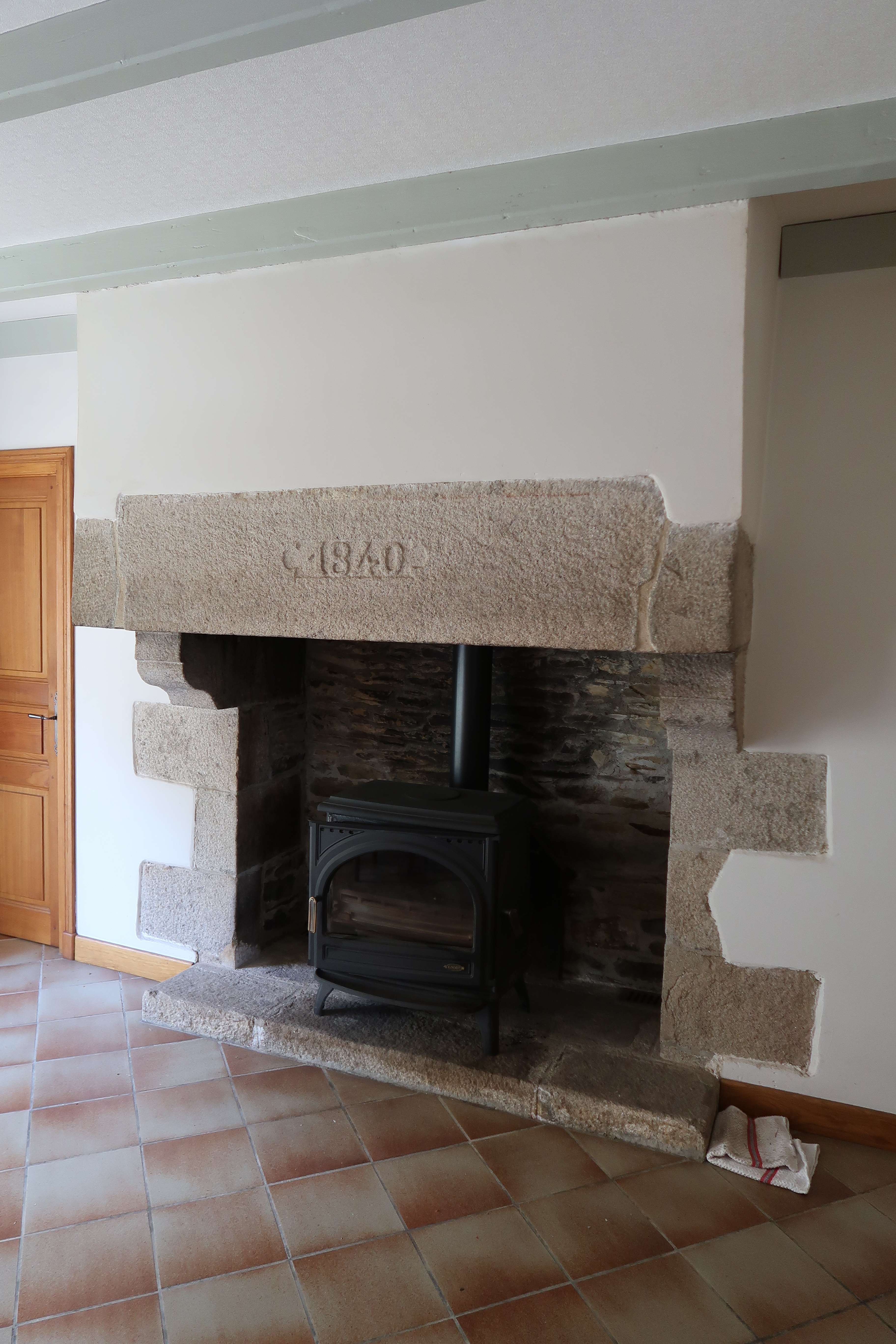 Minihy-Tréguier, Convenant Quellec : ferme, détail de la cheminée du logis datée 1840Immatriculation