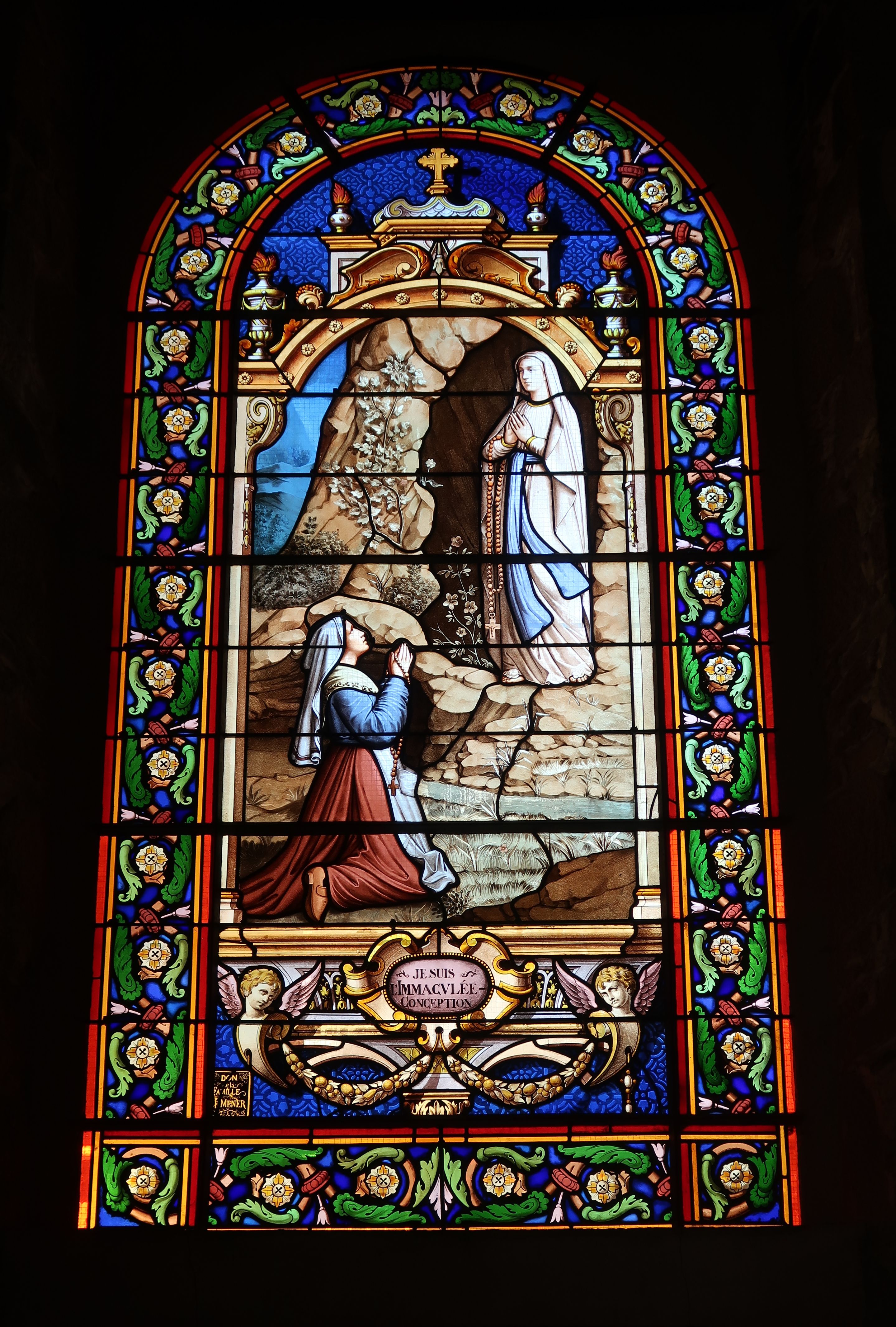 Verrière du transept nord, Je suis l'immaculée conception, don de la famille F. MenerImmatriculation