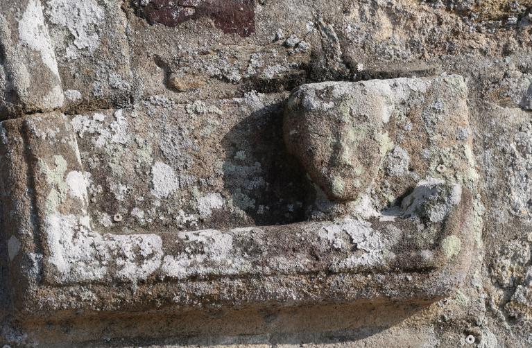 Façade Ouest, portail: détail du décor sculptéImmatriculation