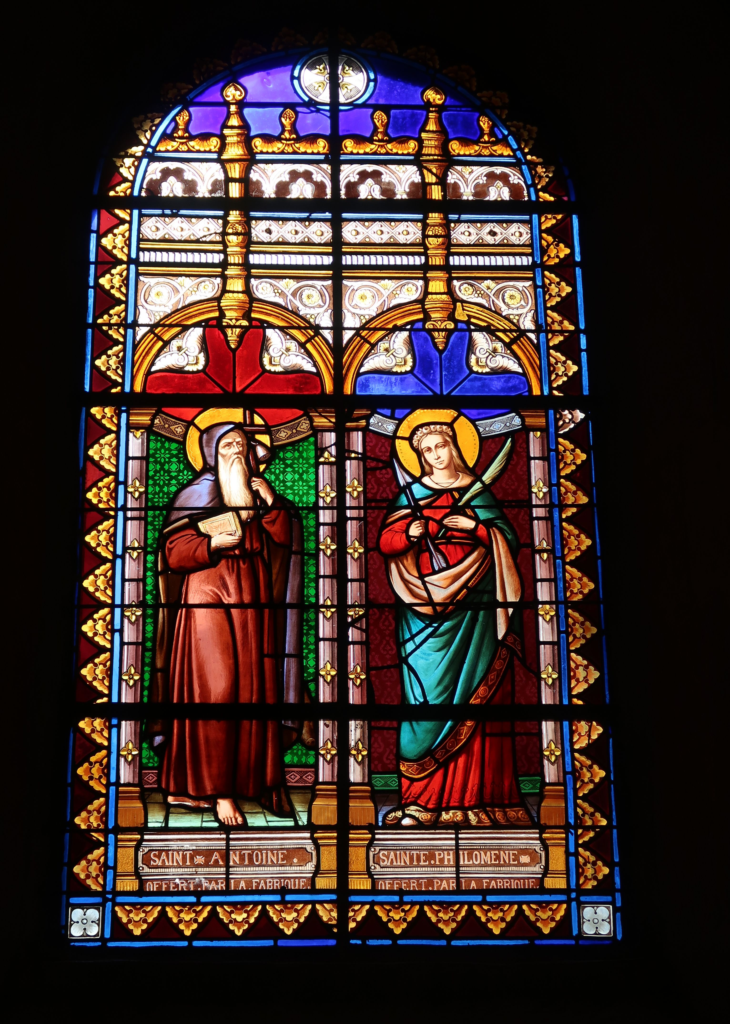 Vitrail, saint Antoine et sainte Philomène, offfert par la fabriqueImmatriculation