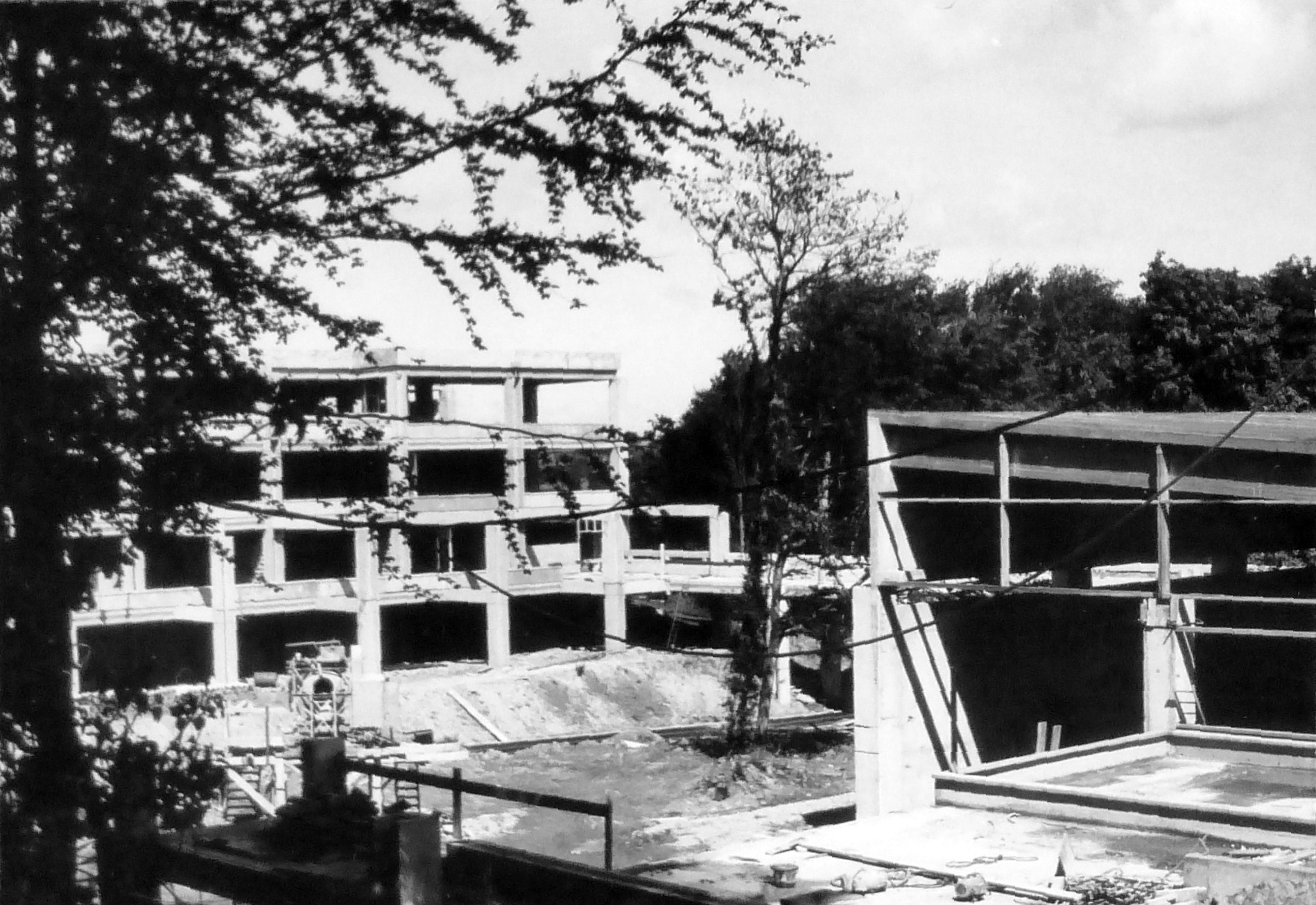 Le lycée en construction. Au premier plan, à droite, le gymnase.Immatriculation