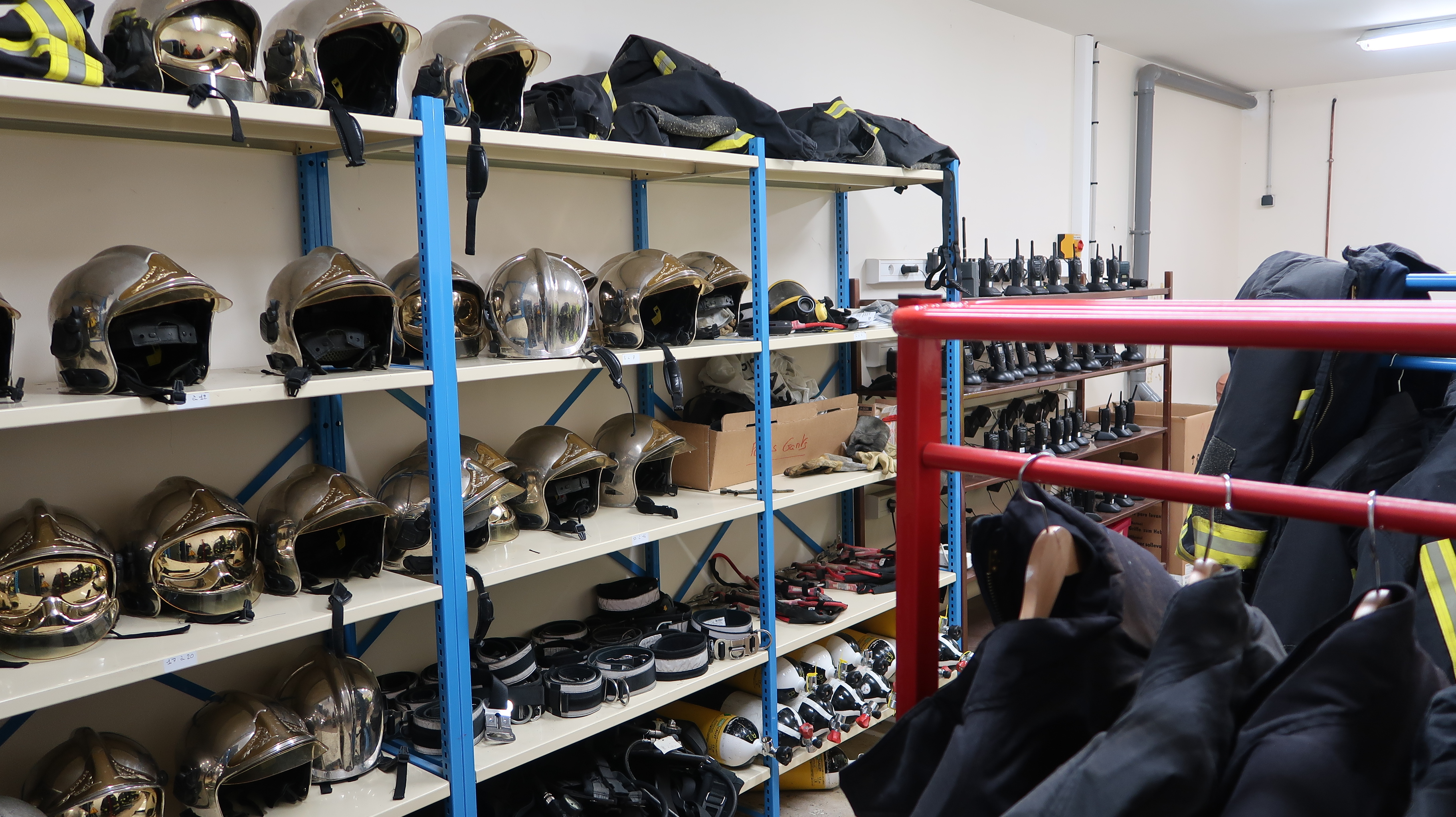 Espace de rangement des équipements nécessaires aux équipements de sapeur-pompier (métiers de la sécurité).Immatriculation