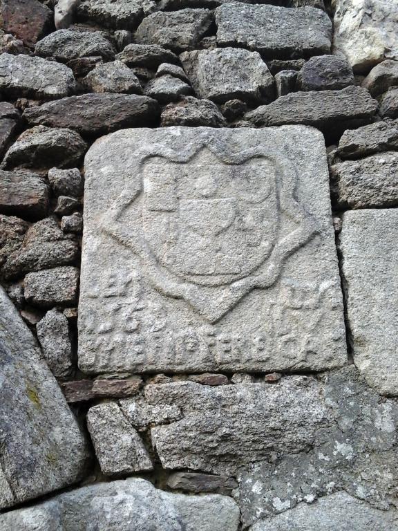 Détail de la pierre sculptée d'un calice et d'une inscription : EN/ 1569/M(essi)R(e) :LU/CAS/ME : FIT FEREImmatriculation