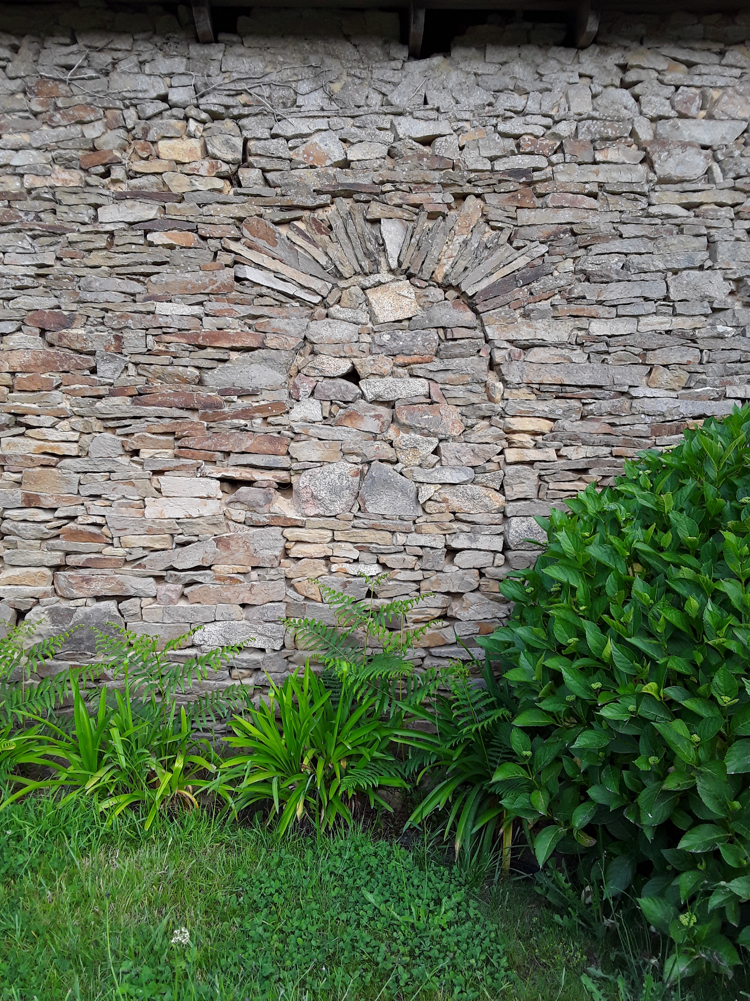 Dépendance dans laquelle se trouve (trouvait?) un four à pain, élévation sud, détail de l'ouverture murée. Etat en 2019.Immatriculation