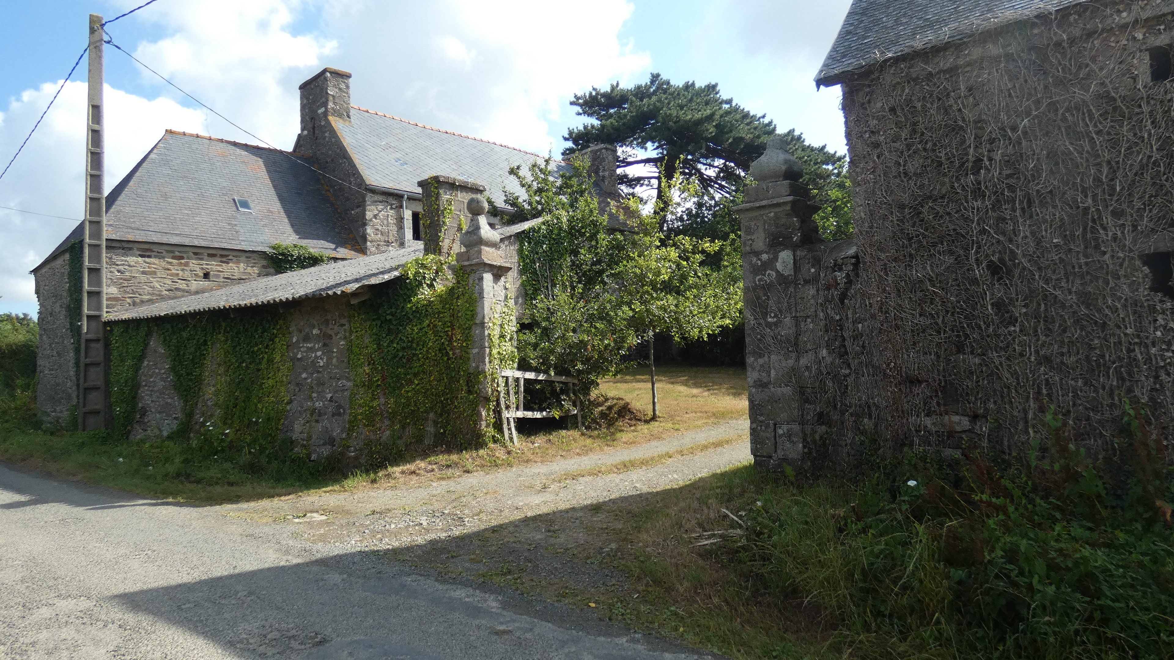 Ferme de Kerescantou. Piliers d'entrée sculptés. Etat en 2019.Immatriculation