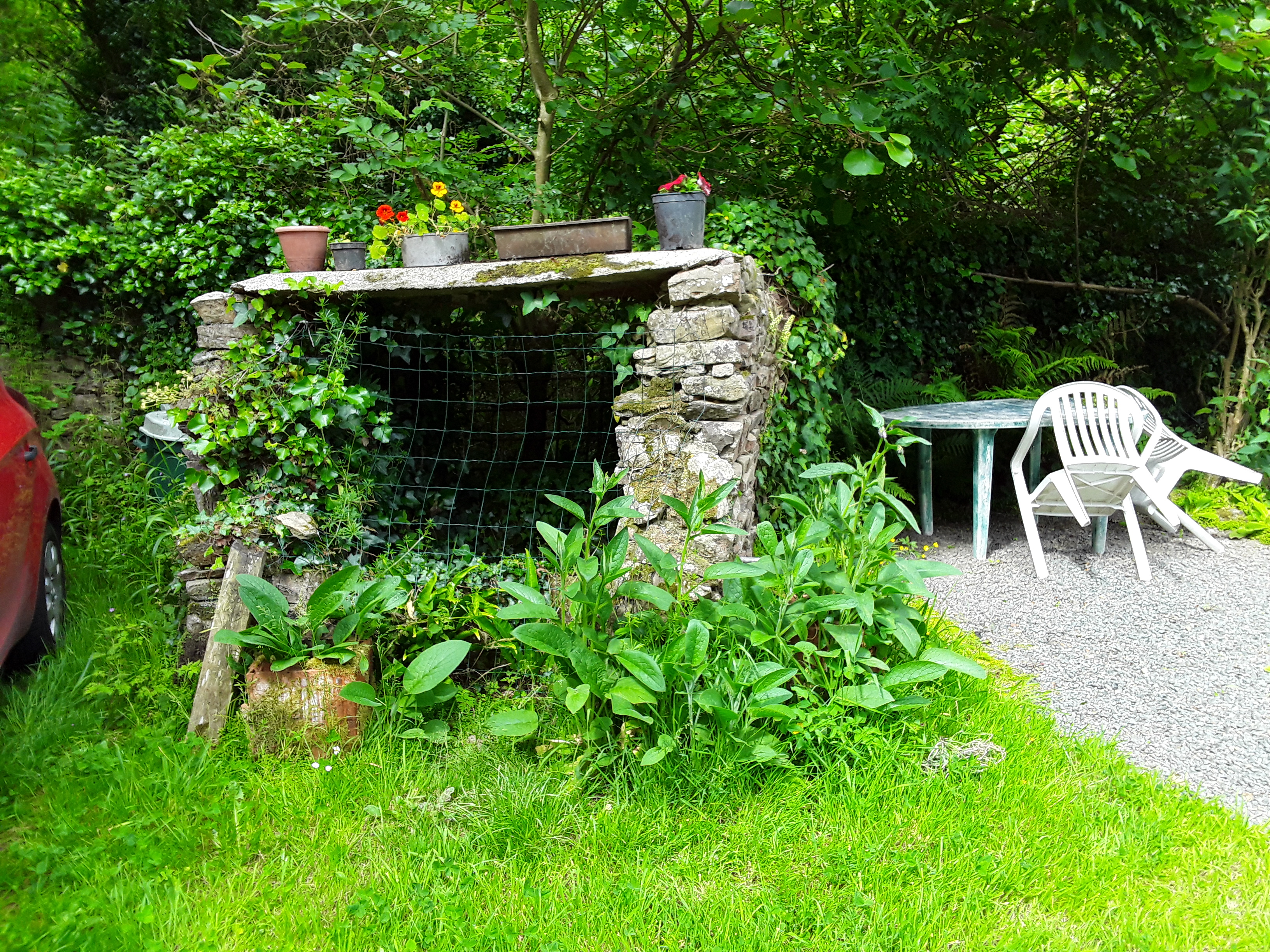 Ferme de Coat Boloï. Puits envahit par la végétation. Etat en 2019.Immatriculation