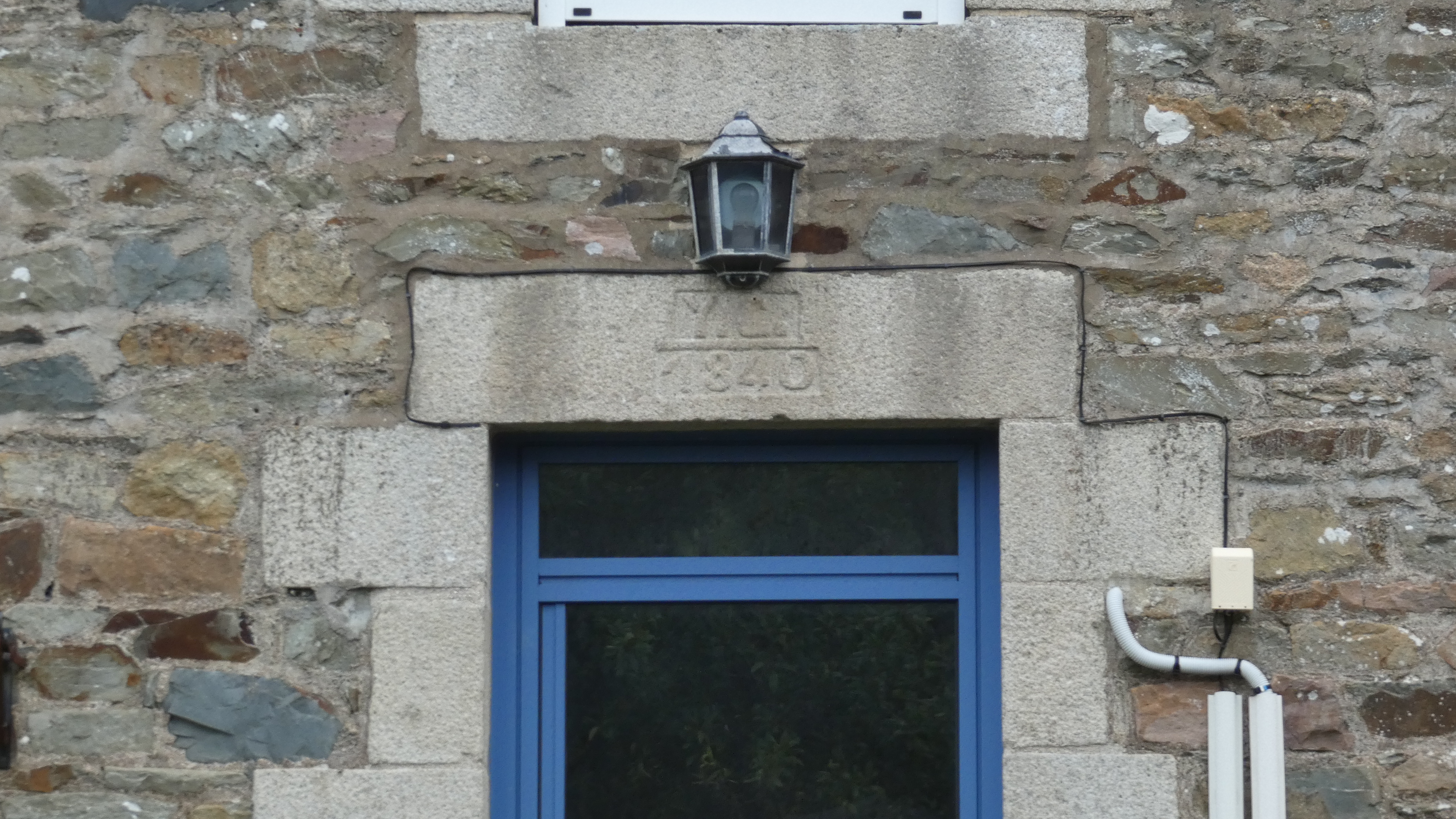 Maison au 6 rue de Fontaine Pierre. Détail des inscriptions présentes sur le linteau de la porte d'entrée : " Y.C. 1840". Etat en 2019.Immatriculation