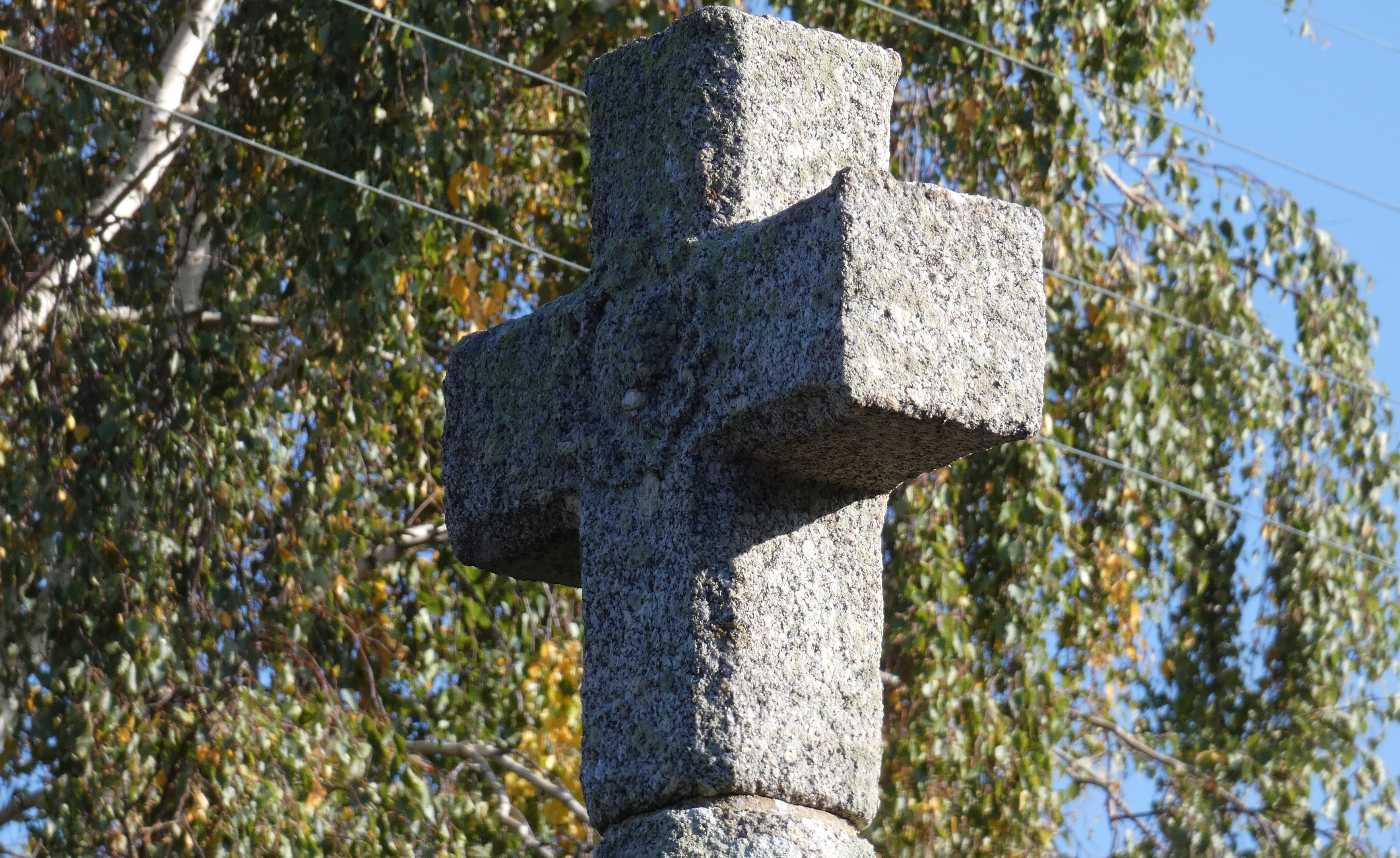 Détail de la face ouest du croisillon portant en son centre un coeur entouré d'une couronne d'épines. Etat en 2019.Immatriculation