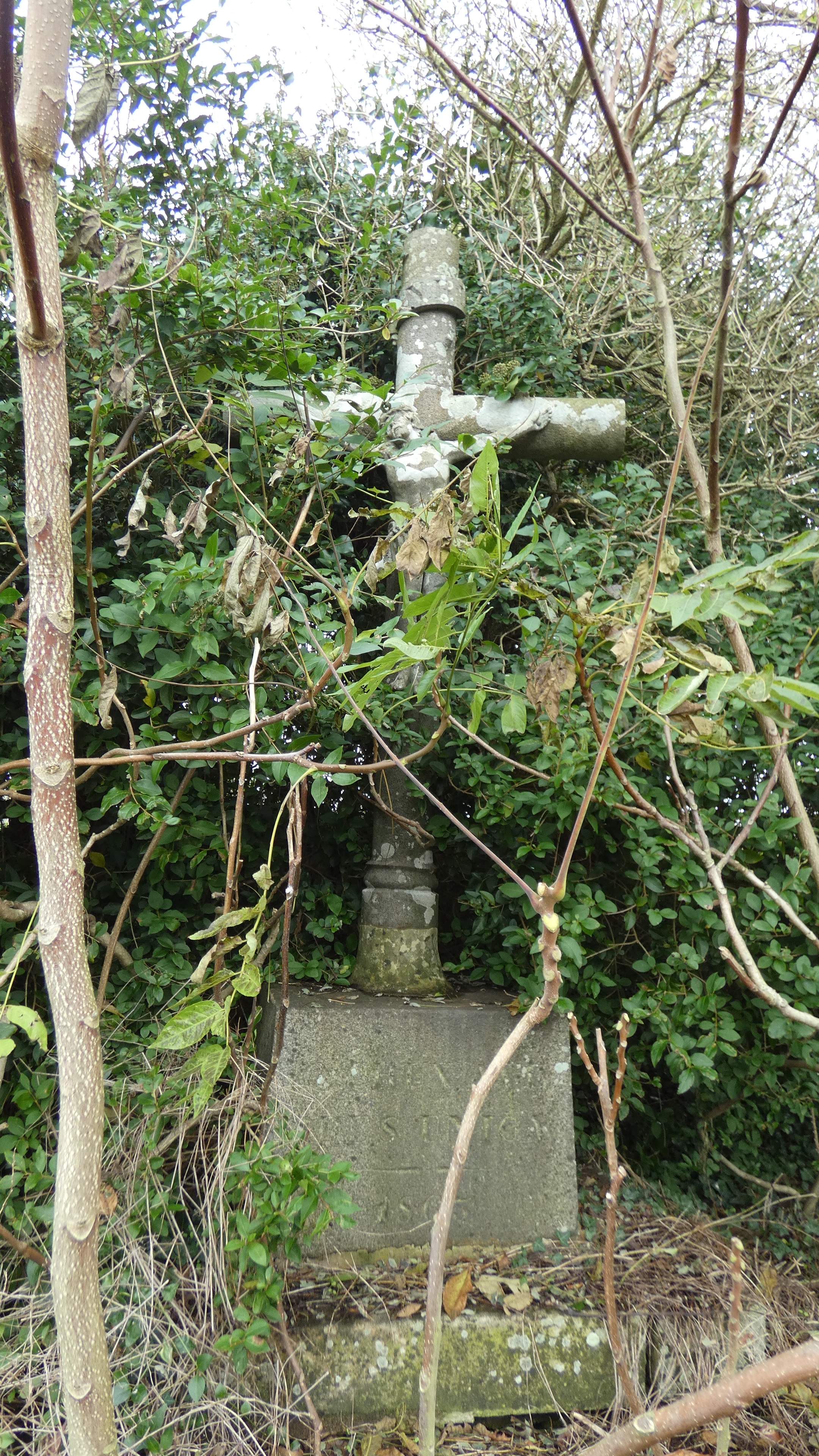 Croix de Lann Alan. Vue générale du socle et du croisillon. Etat en 2019.Immatriculation