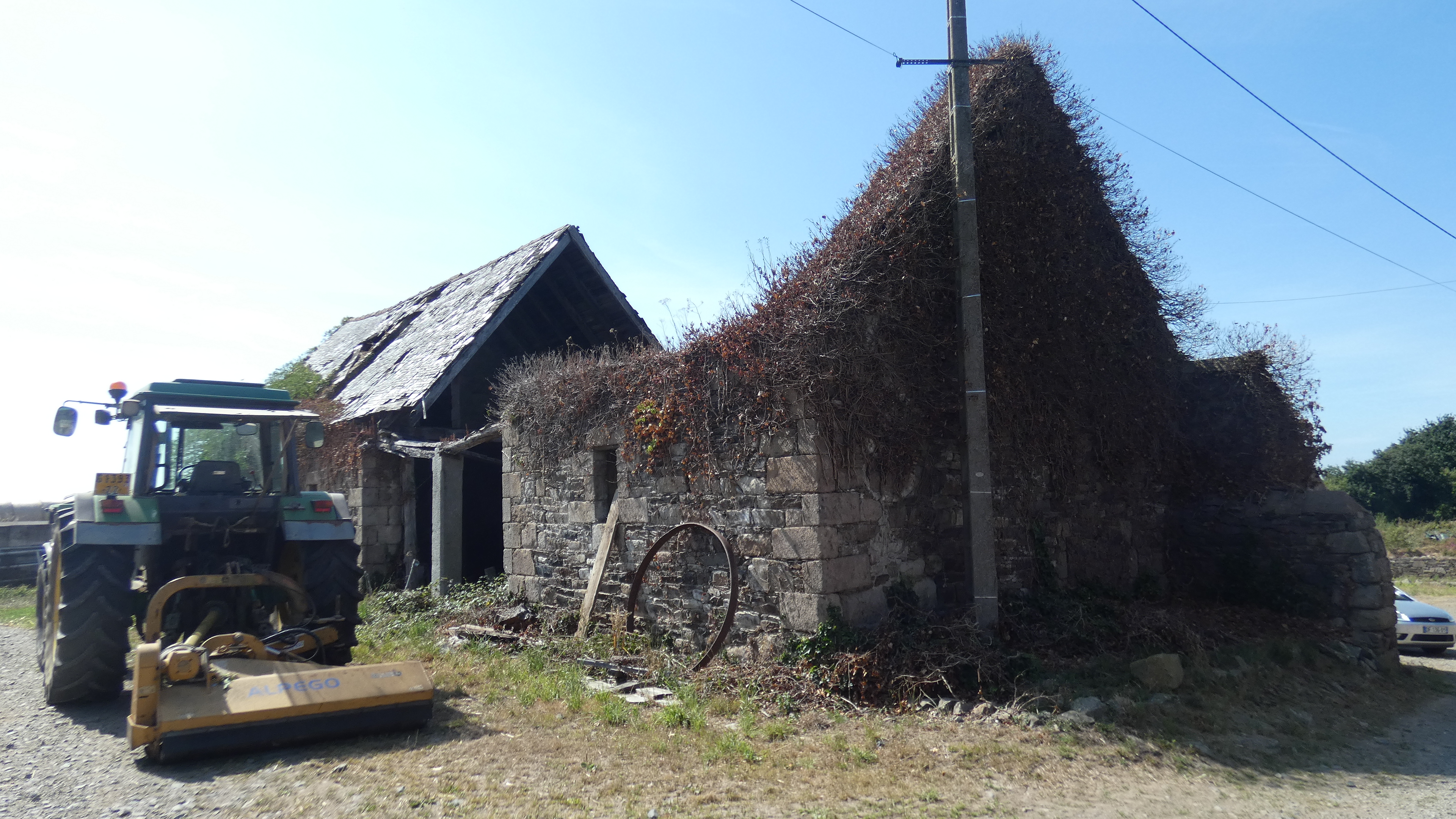 Les deux dépendances isolées (grange sur pilier monolithe en granite et étable). Etat en 2019.Immatriculation