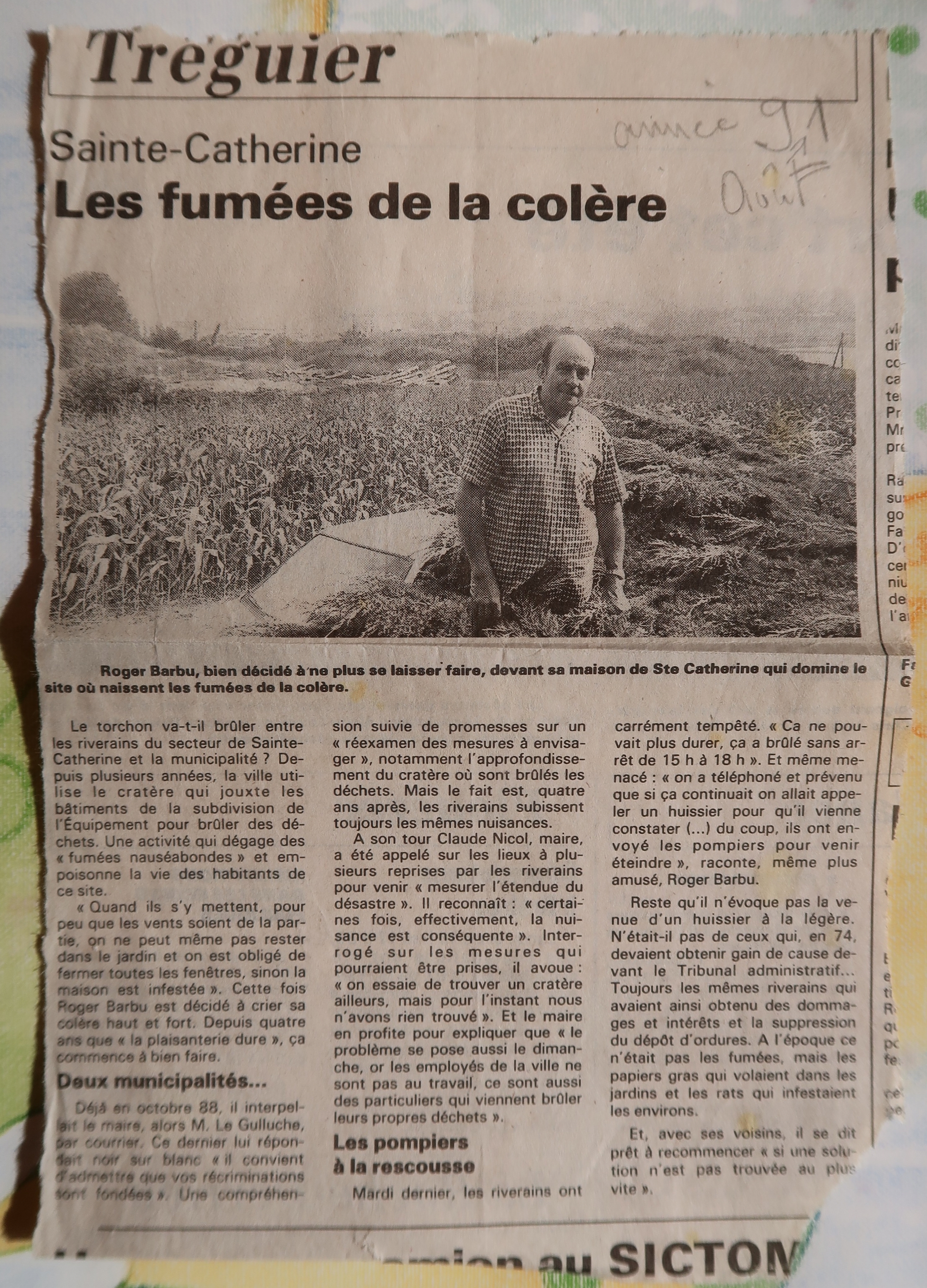 Article de journal intitulé : "Tréguier. Sainte-Catherine. Les fumées de la colère", août 1991 (collection particulière)Immatriculation