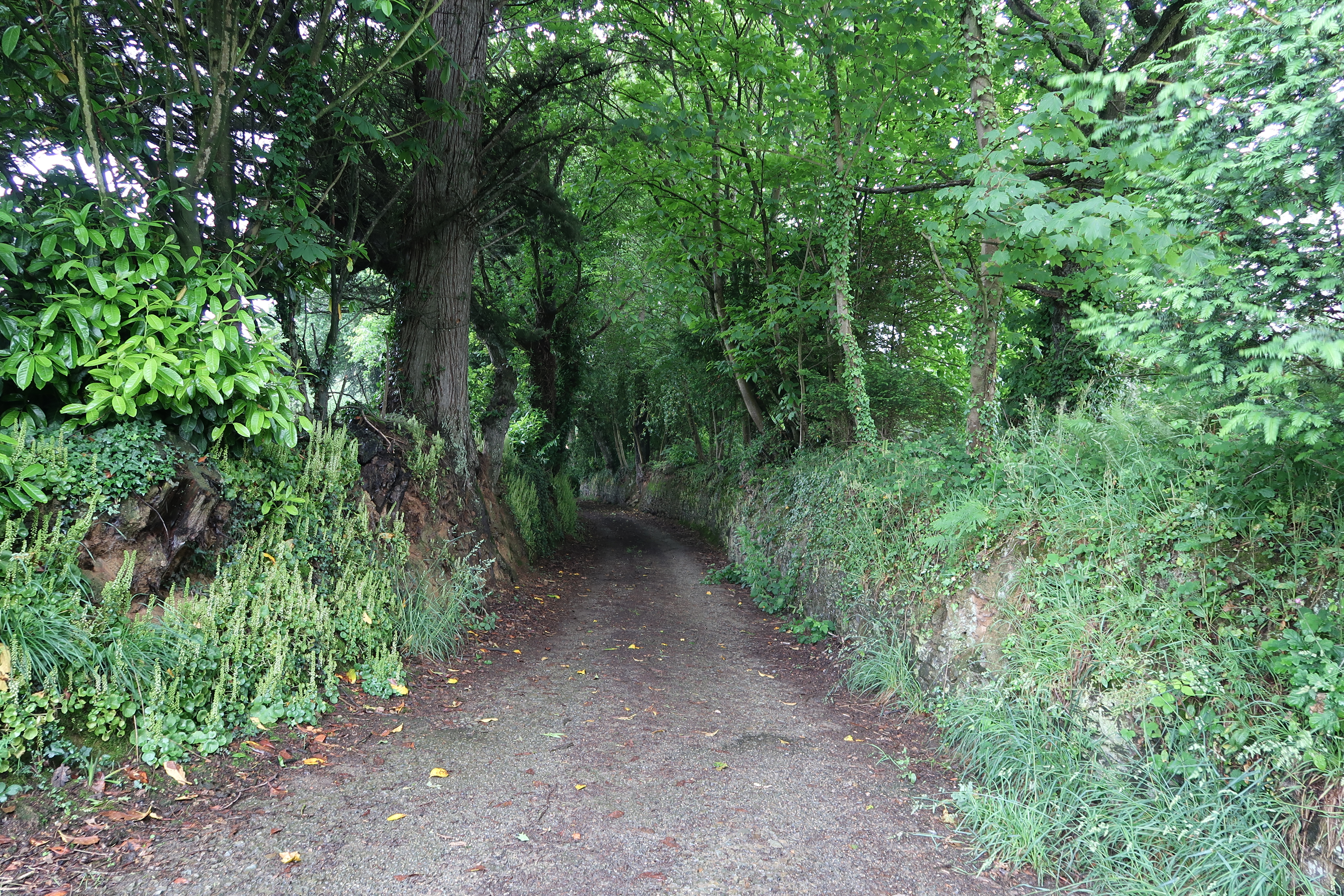 Minihy-Tréguier : chemin bordé de talus-murs et d'arbres de la ferme de Feunteun VinImmatriculation