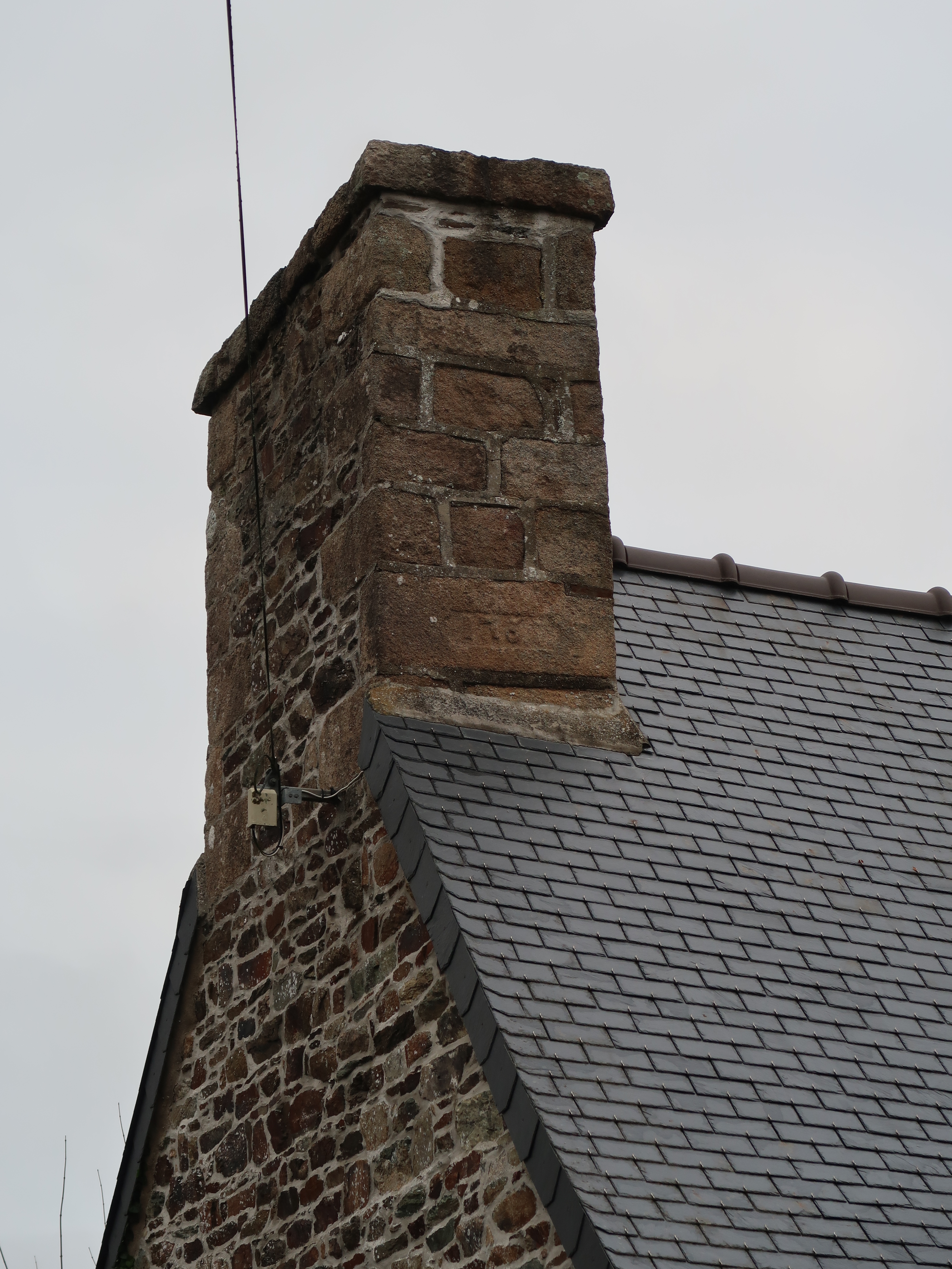 Minihy-Tréguier, le Syet : détail de la souche de cheminée du logis portant le millésime "1737" (?)Immatriculation