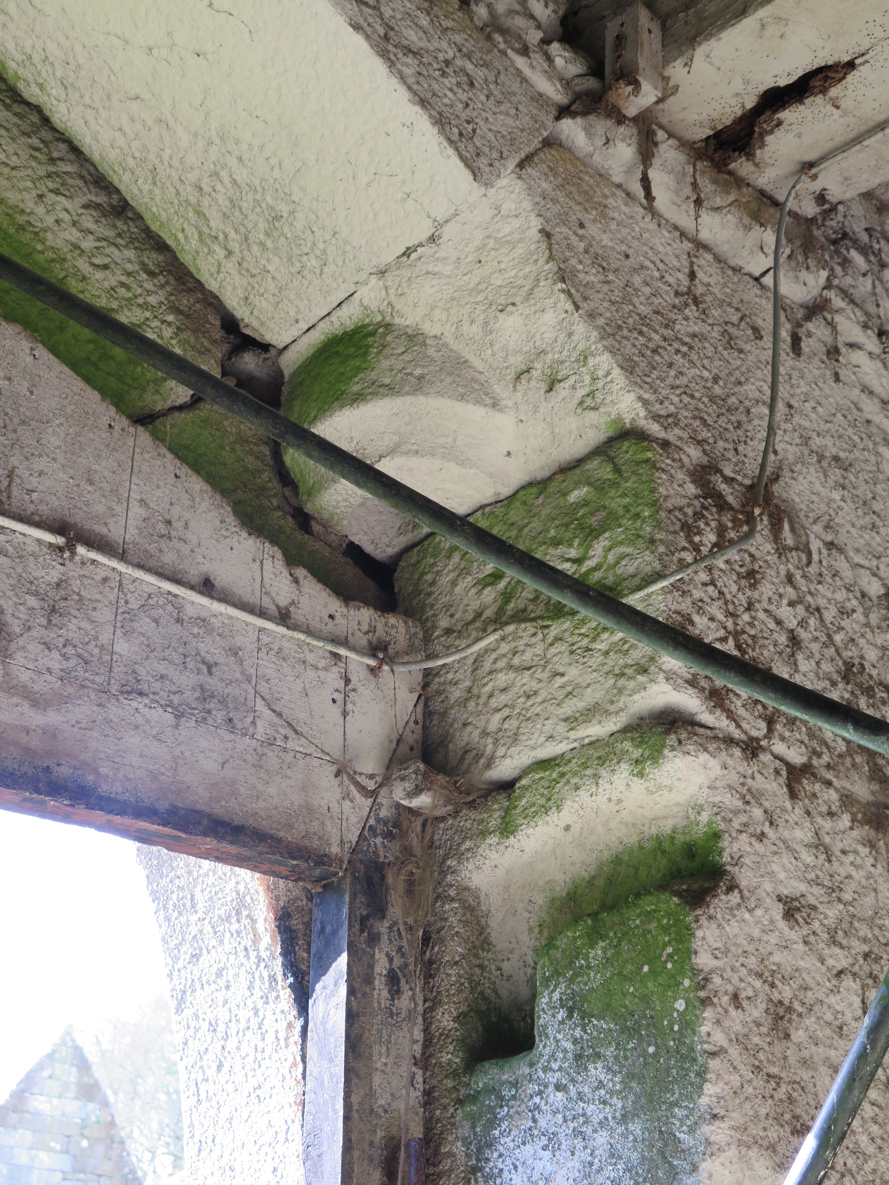 Plouaret, manoir de Guernanchanay : grange, revers de la porte charretière, détail de l'arrière-linteau en granite et fixation de la porteImmatriculation
