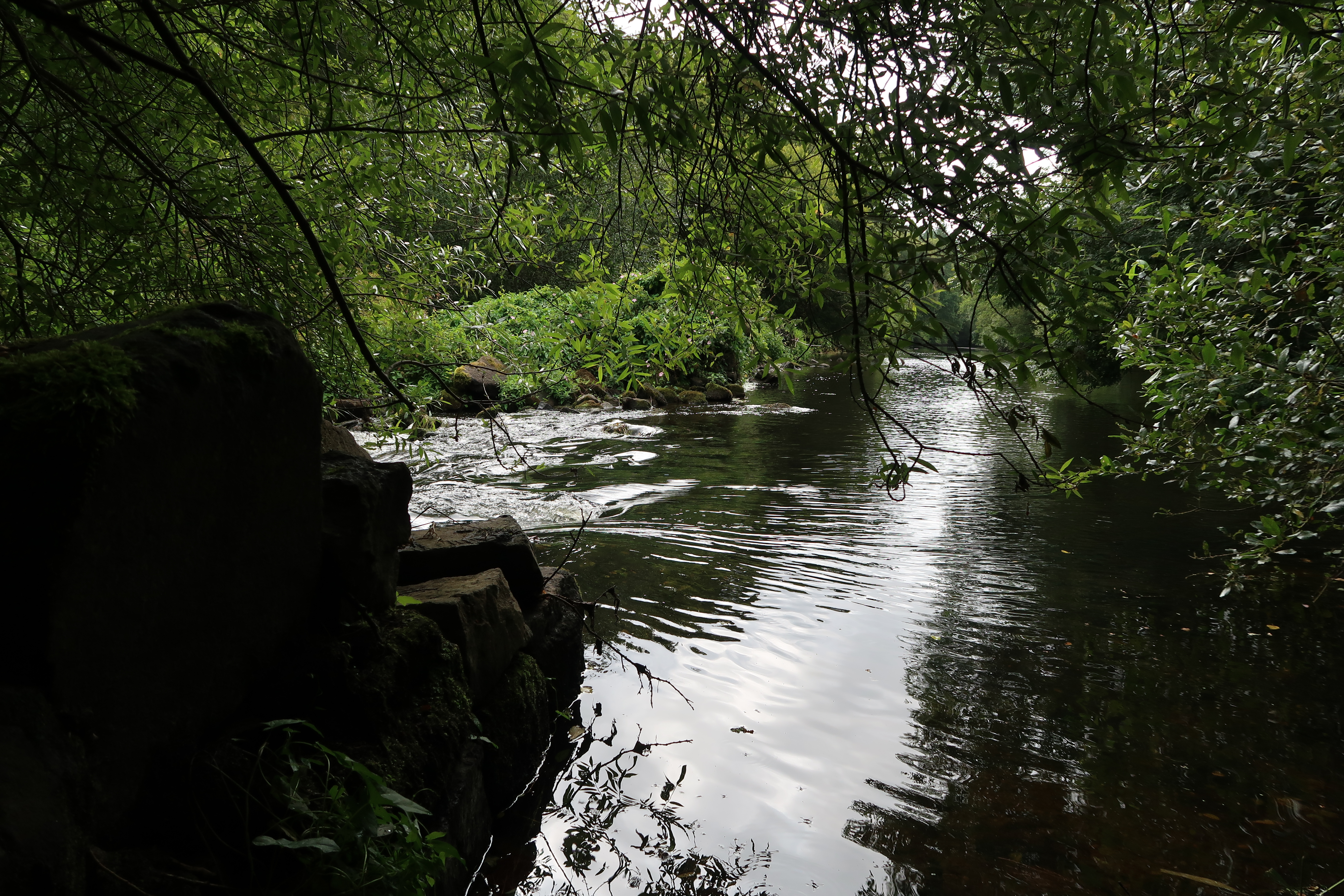 Barrage situé en travers du Léguer servant à l'alimentation du bief du moulin, maçonnerie de pierre de taille de granite (état en 2019)Immatriculation