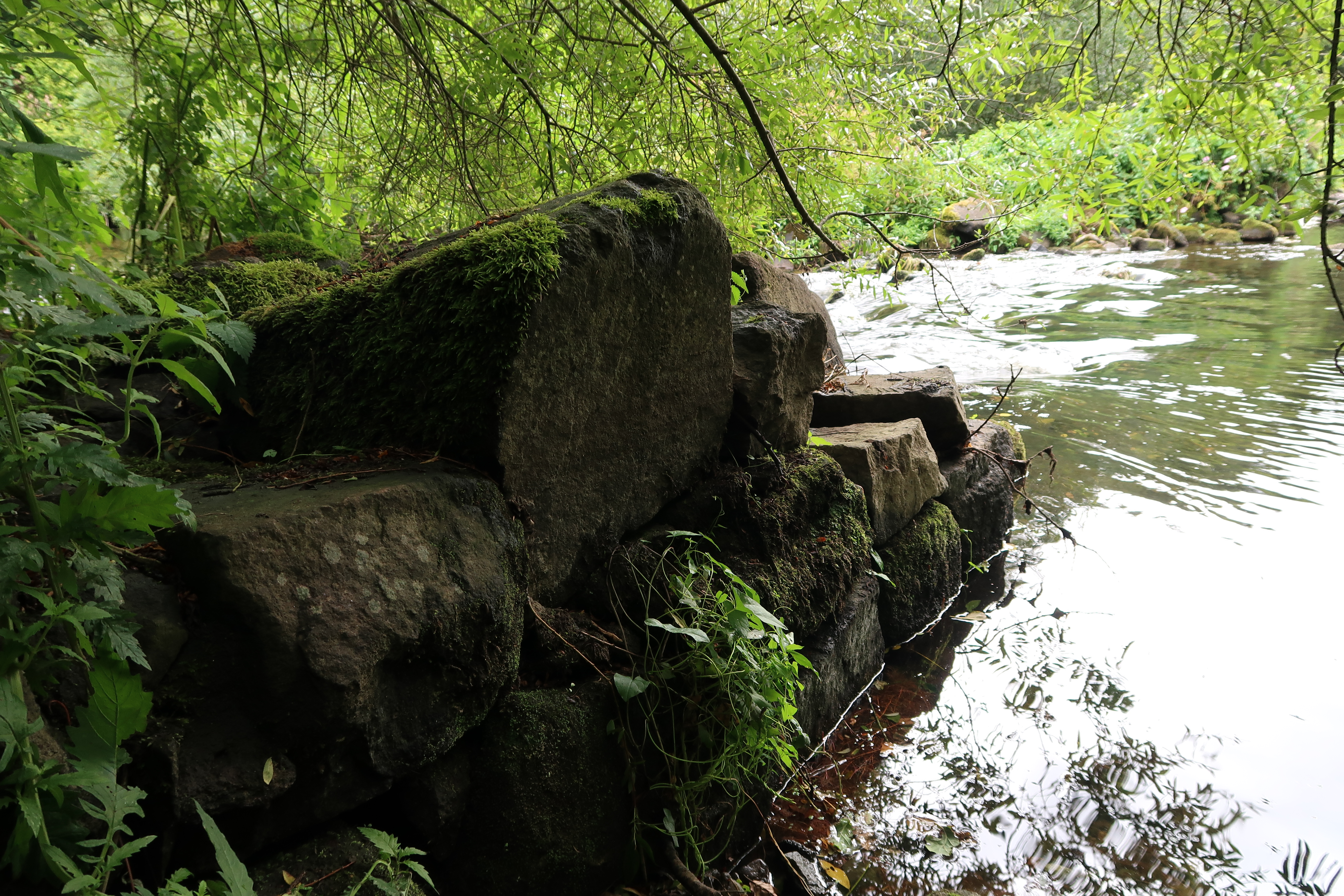 Barrage situé en travers du Léguer servant à l'alimentation du bief du moulin, maçonnerie de pierre de taille de granite (état en 2019)Immatriculation