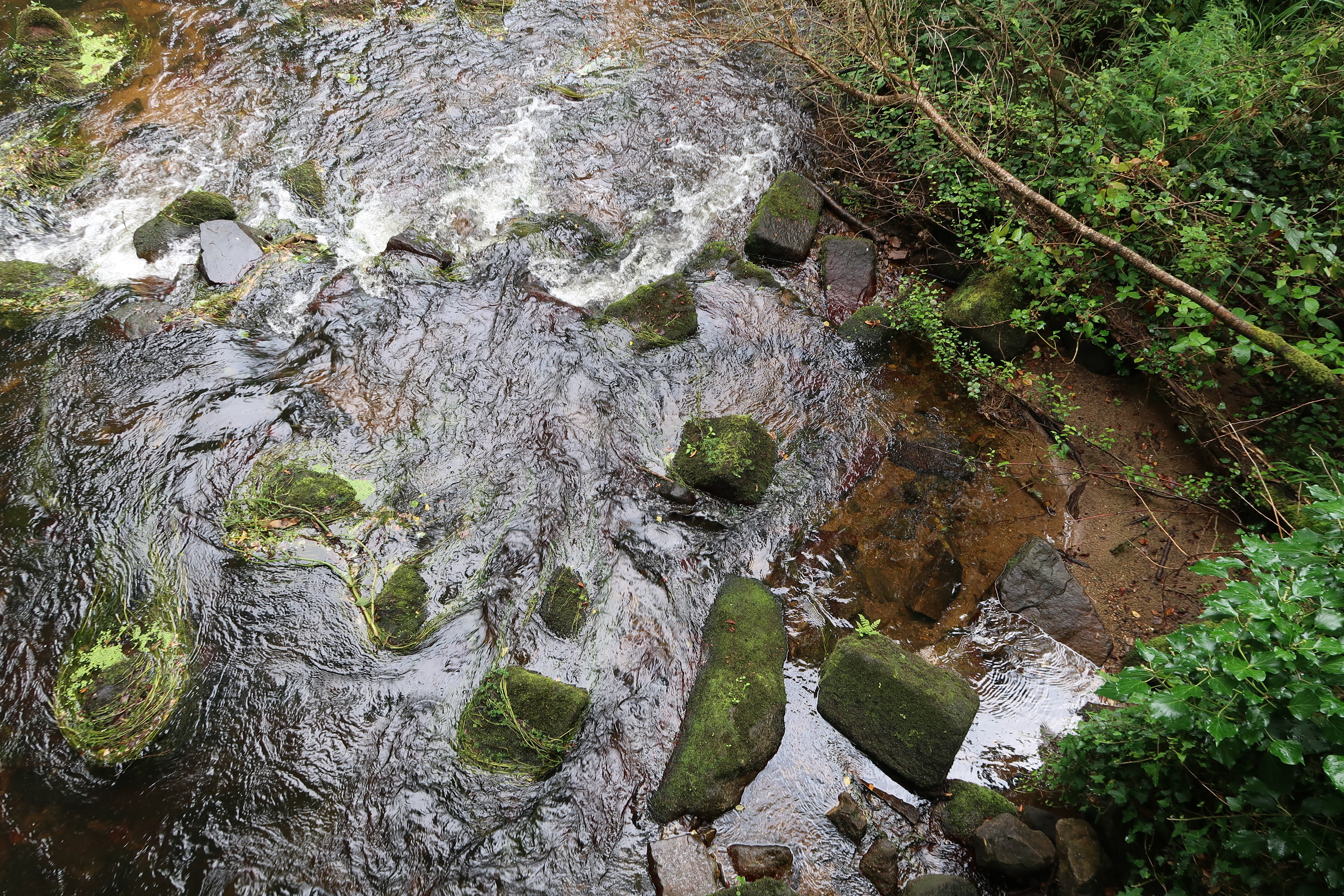 Pierres de taille de granite situées dans le lit du Léguer sous la passerelle (état en 2019). Ces pierres témoignent de l'existence d'un pont ancien figurant déja sur le cadastre de 1826Immatriculation