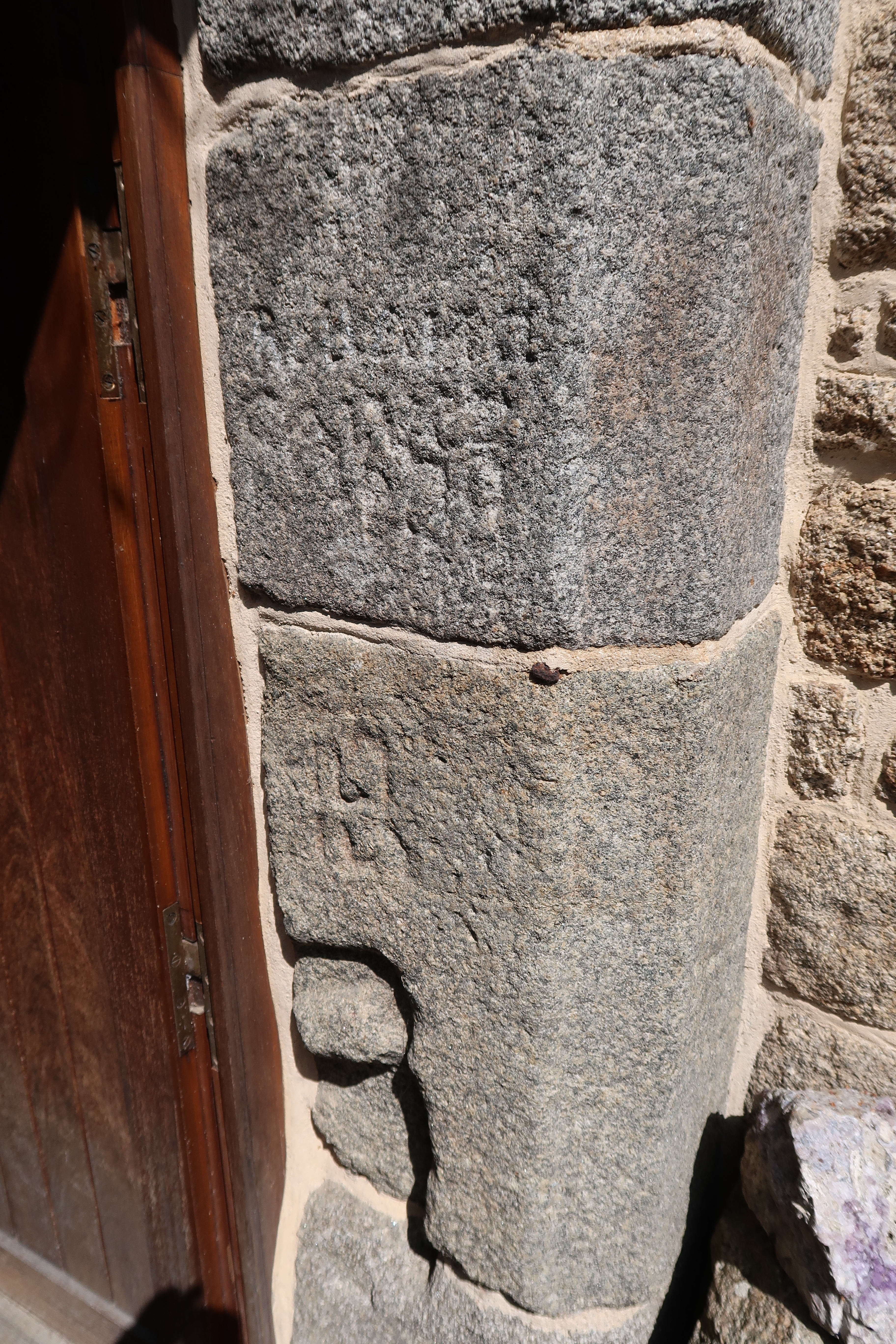 Détail du piédroit de la porte en arc plein cintre : graffitis et inscriptions pieusesImmatriculation