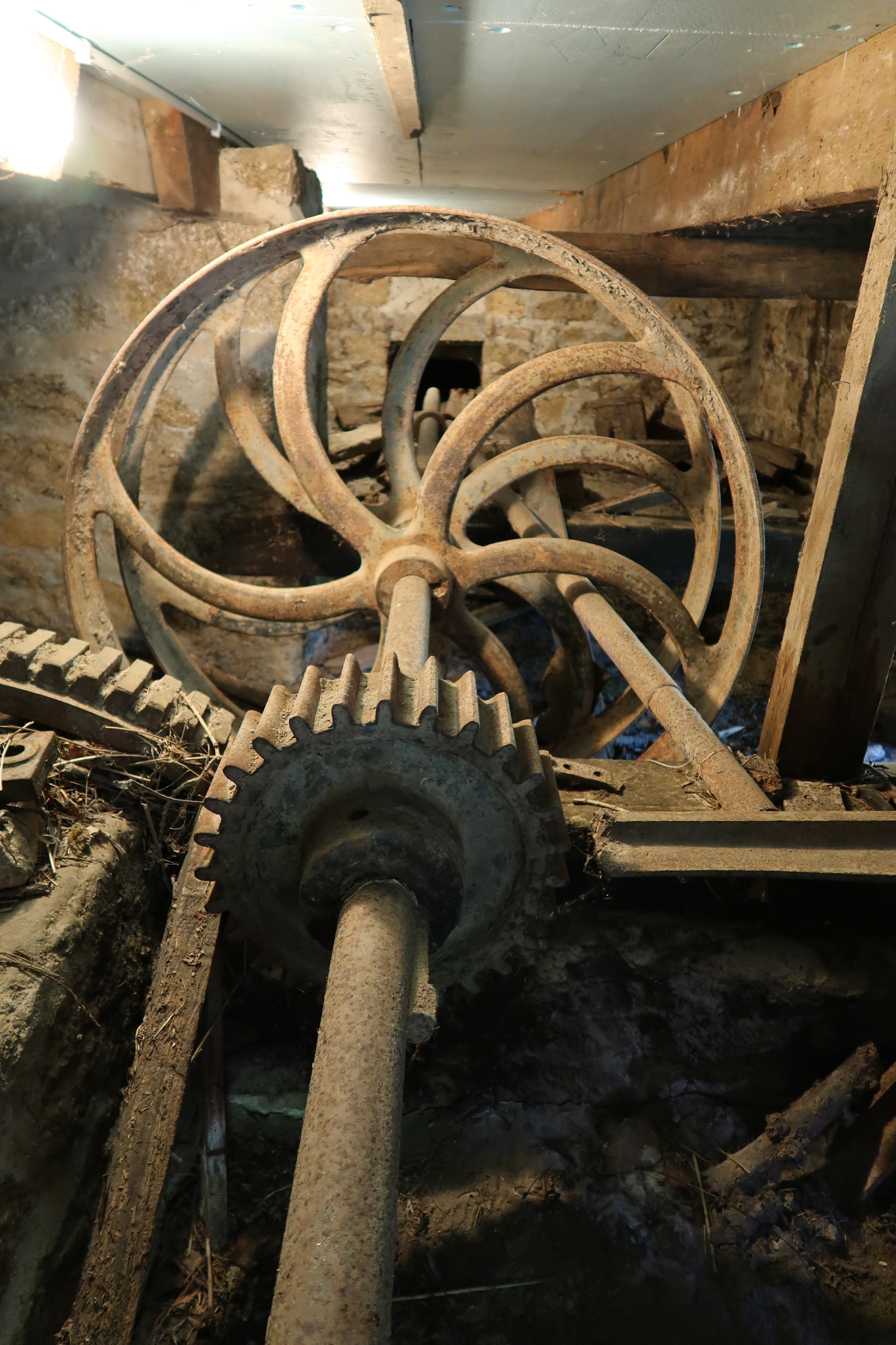 Sous-sol, "chambre des transmissions et arbres", vue de détail du mécanisme hydrauliqueImmatriculation
