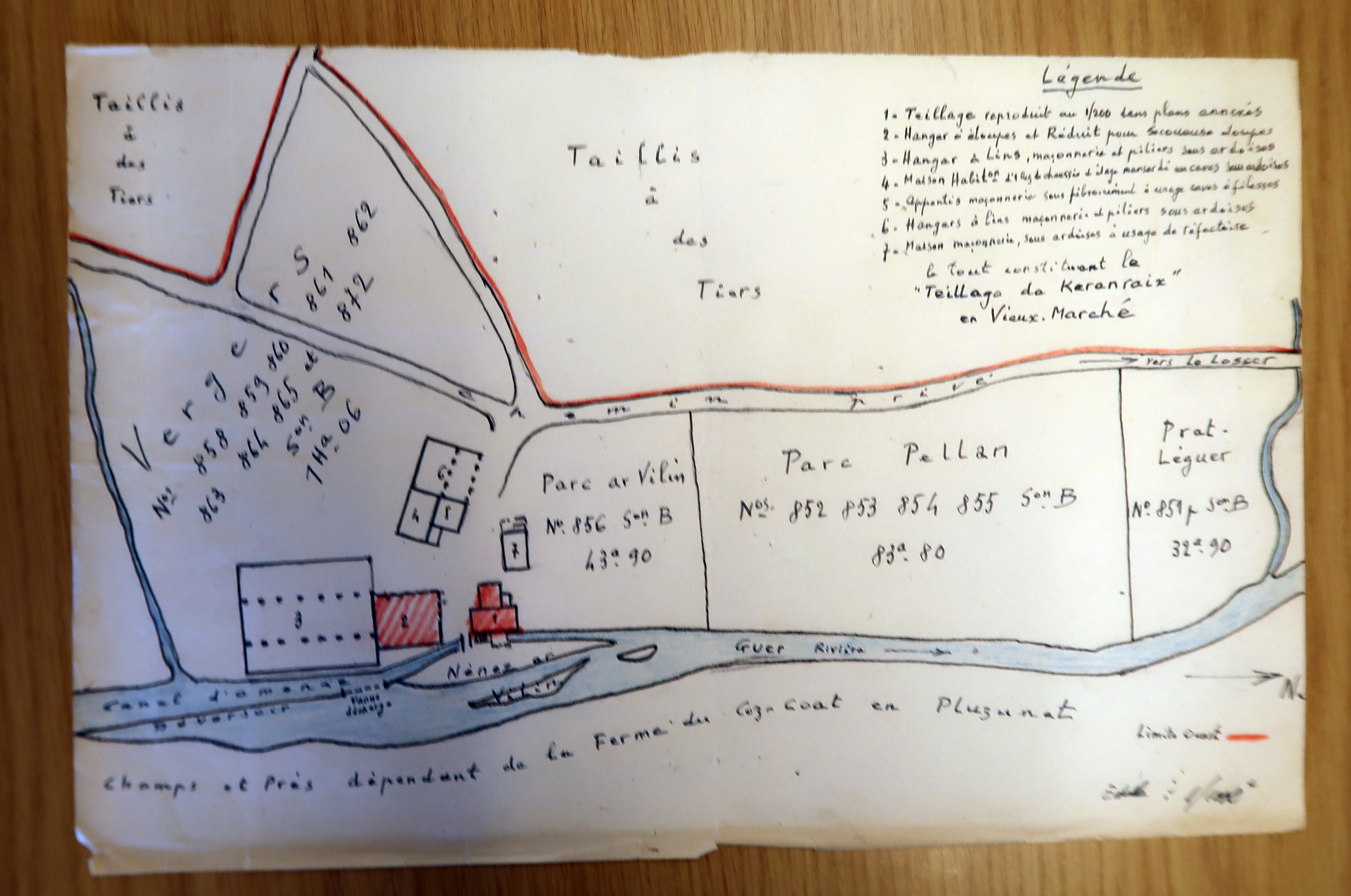 Plan général avec sa légende, 1952 (Archives départementales des Côtes-d'Armor, série 1473 W 124)Immatriculation
