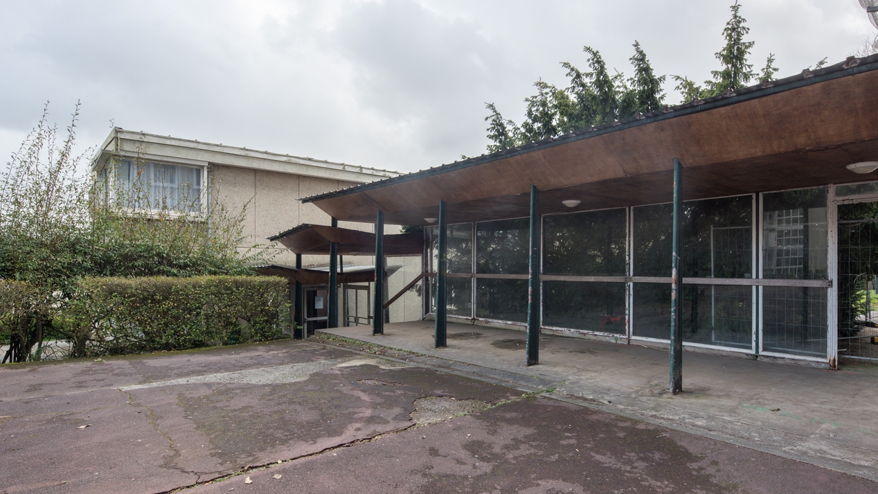 Galerie de liaison entre le bâtiment D (internat) et le bâtiment C, externat. Elle avait été réclamée par le Conseil général des bâtiments de France.Immatriculation