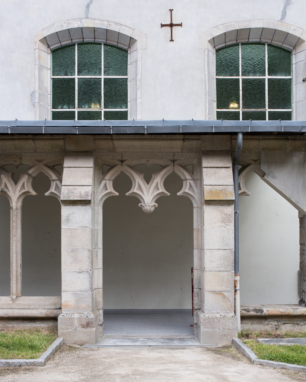Bâtiments de l'ancien séminaire, détail sur un élément du cloitre des Carmes de Pont-L'Abbé (15e siècle, remonté ici en 1902).