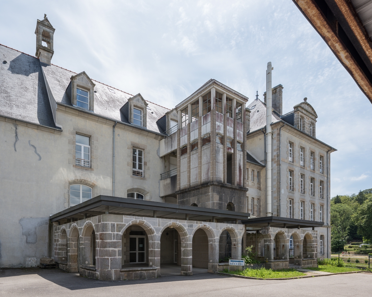 Ancien séminaire, aile nord-ouest, façade nord-ouest. Des éléments de cloitre remontés matérialisent l'entrée de la cour centrale. Une cage d'escalier extérieure a été ajoutée.Immatriculation
