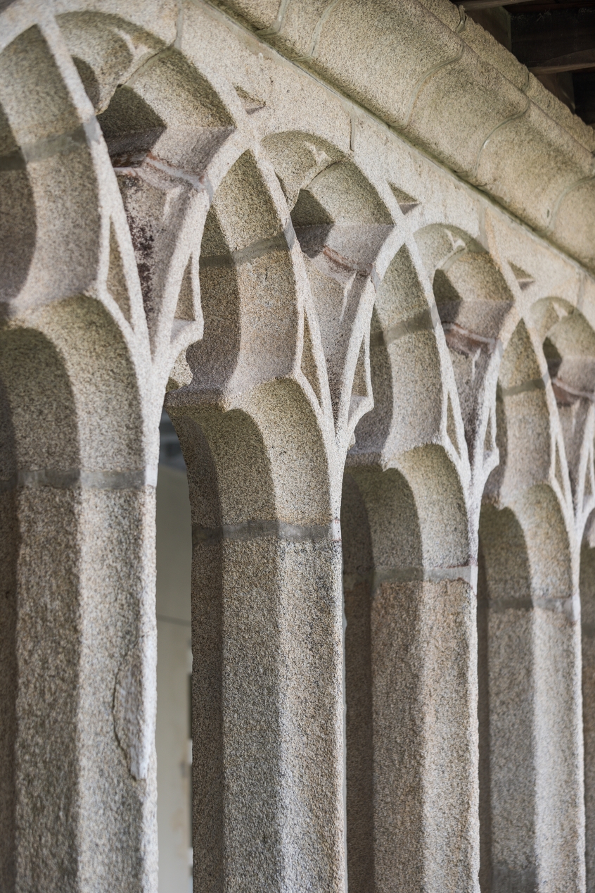 Détail du cloitre de l'ancien séminaire, ancien cloitre des Carmes de Pont-L'Abbé (15e siècle), remonté ici, en 1902.Immatriculation