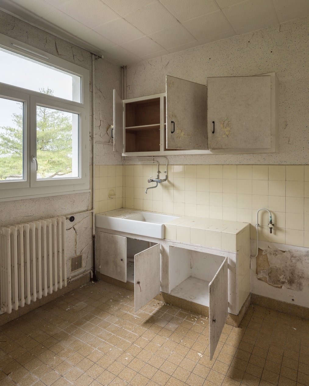 Cuisine dans un logement désaffecté.Immatriculation