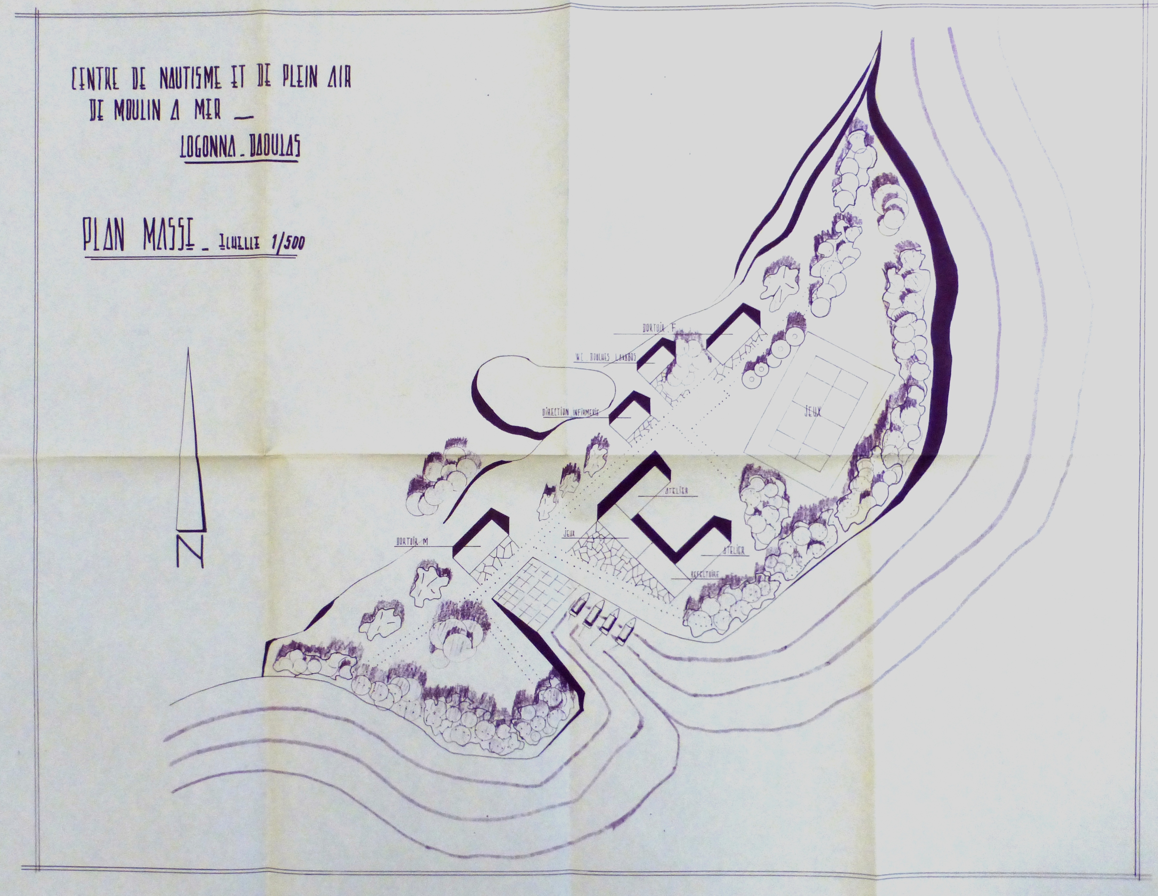 Plan masse des premiers bâtiments du centre nautiqueImmatriculation