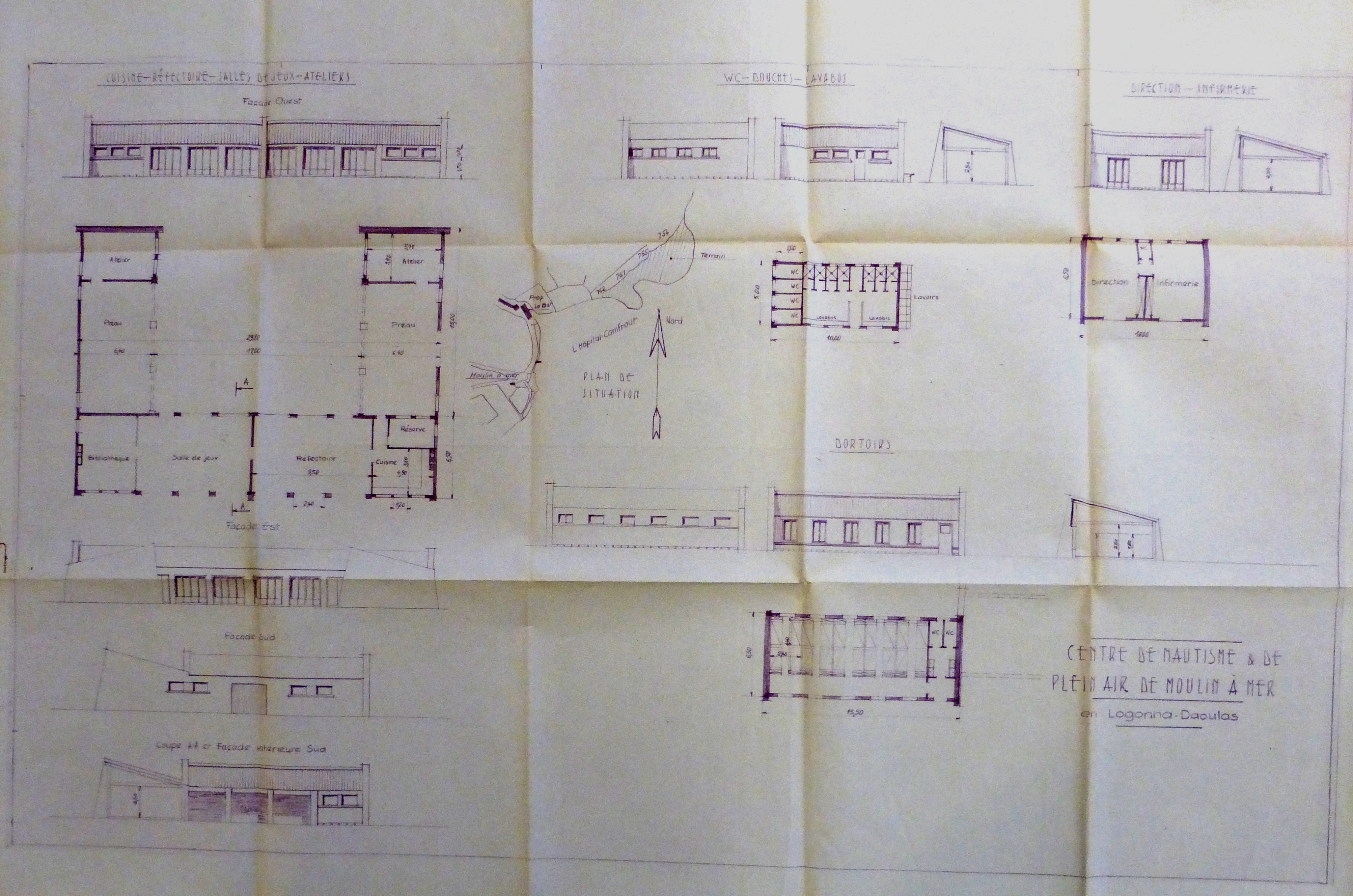 Plans et élévations des premiers bâtiments du centre nautiqueImmatriculation