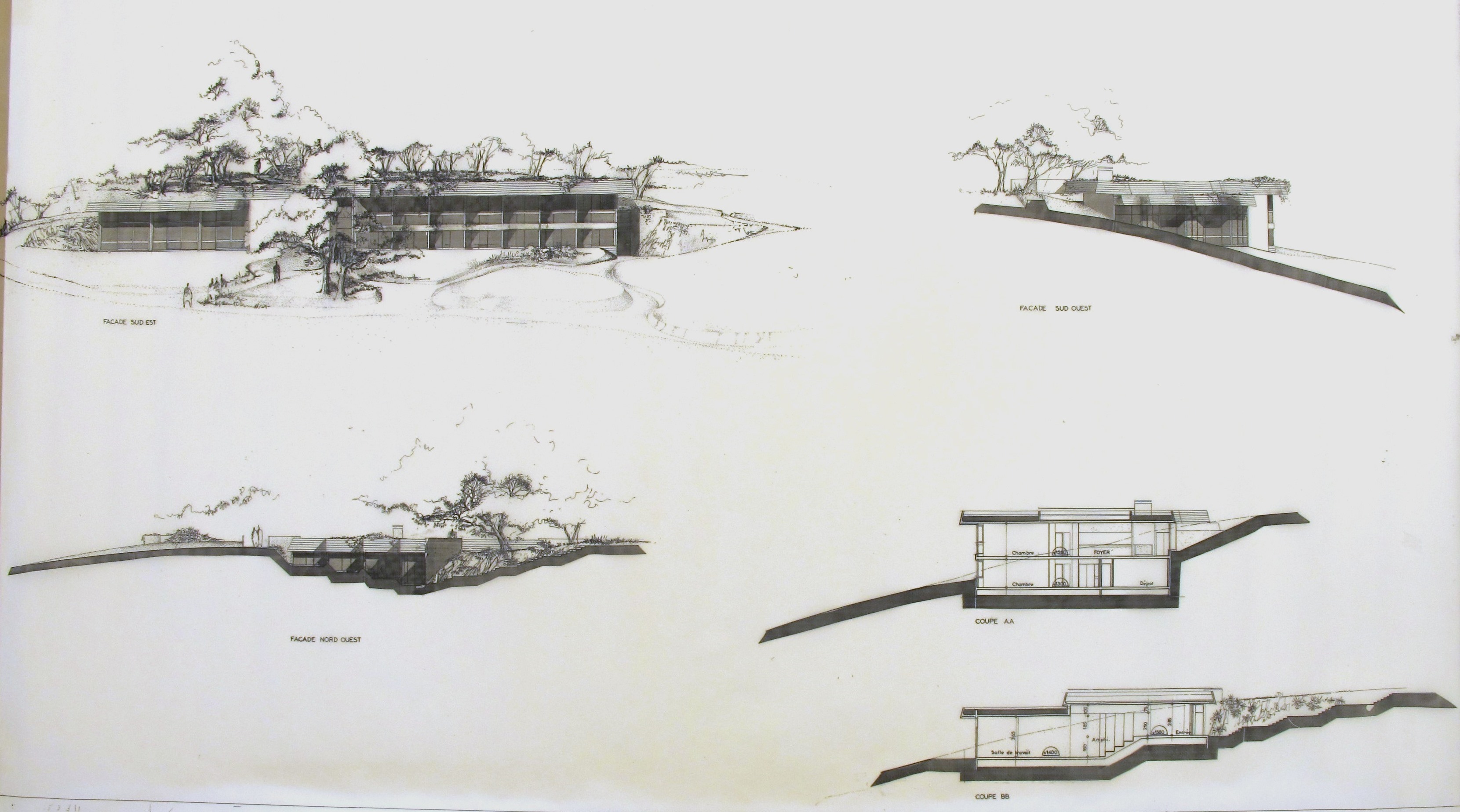 AD Côtes-d'Armor : 199 J 69. Façades et coupes. C. Petton, 1976.