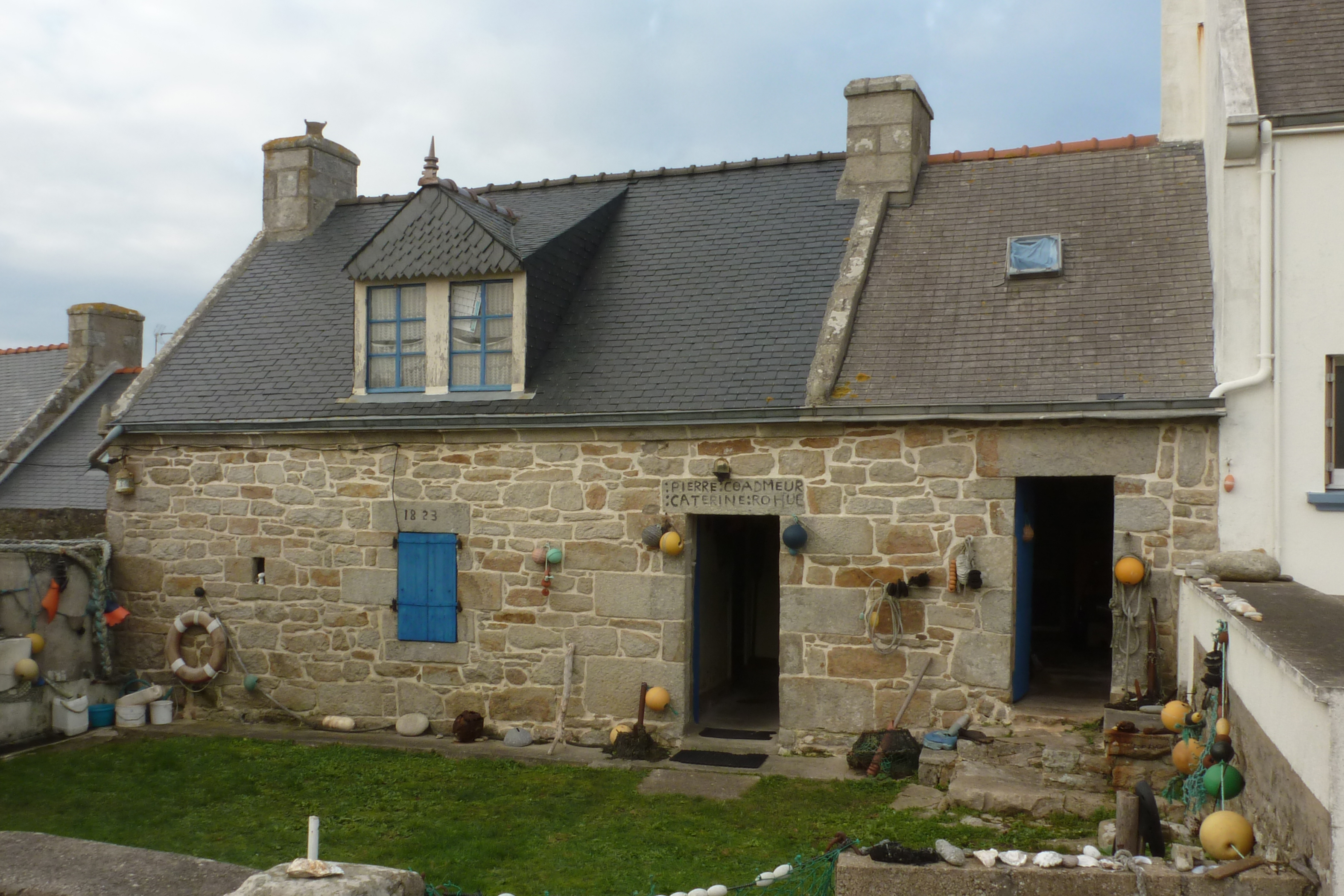 Pendreff, maison 1 dite "de pêcheur" à une pièce en rez-de-chaussée datée 1823. Elévation antérieure du logis et de la crèche accolée.Immatriculation