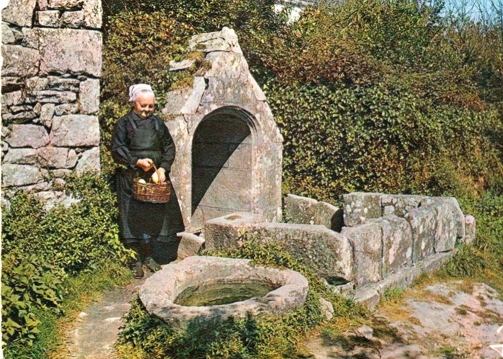 Fontaine de dévotion Saint-Tugen, vue générale vers 1960. (Repro. Carte Postale, coll. Particulière)Immatriculation