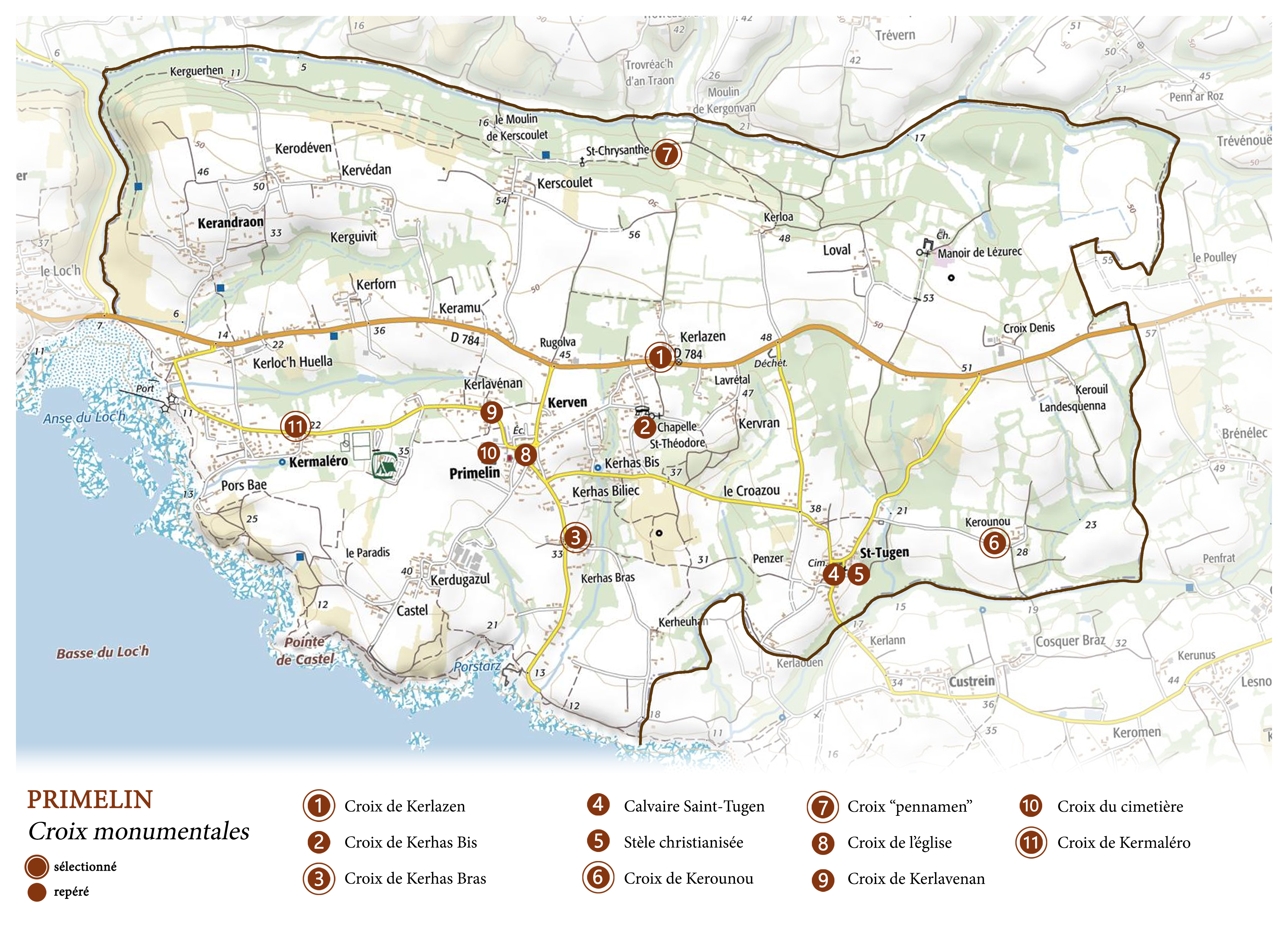 Les croix monumentales de Primelin, carte de localisation.Immatriculation