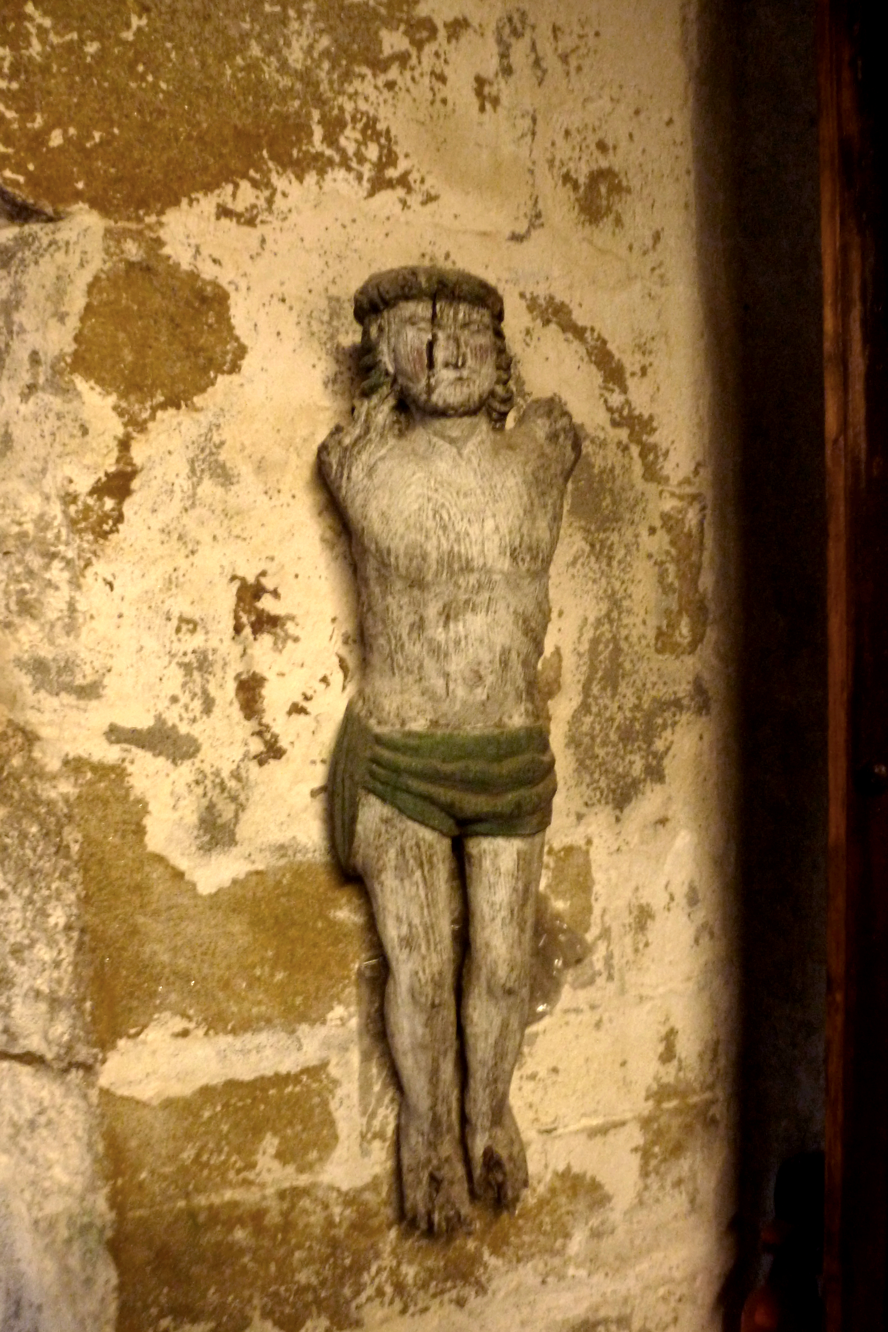Christ en croix qui se trouvait à l'origine sur la croix de Kerlavenan, conservé à la chapelle Saint-Tugen.Immatriculation