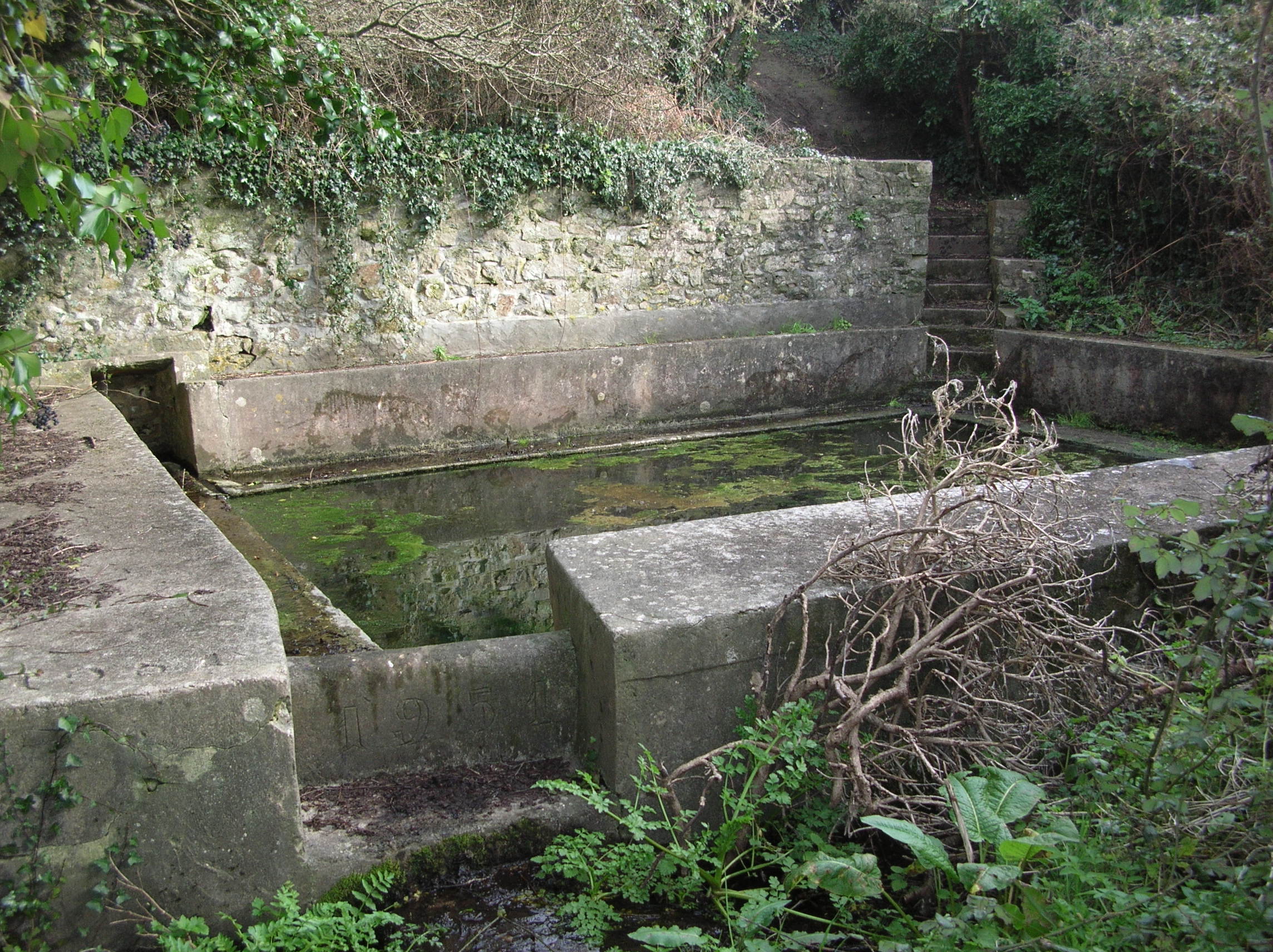 Lavoir du Dreff, vue prise de l'ouest. Porte la date de 1951.Immatriculation