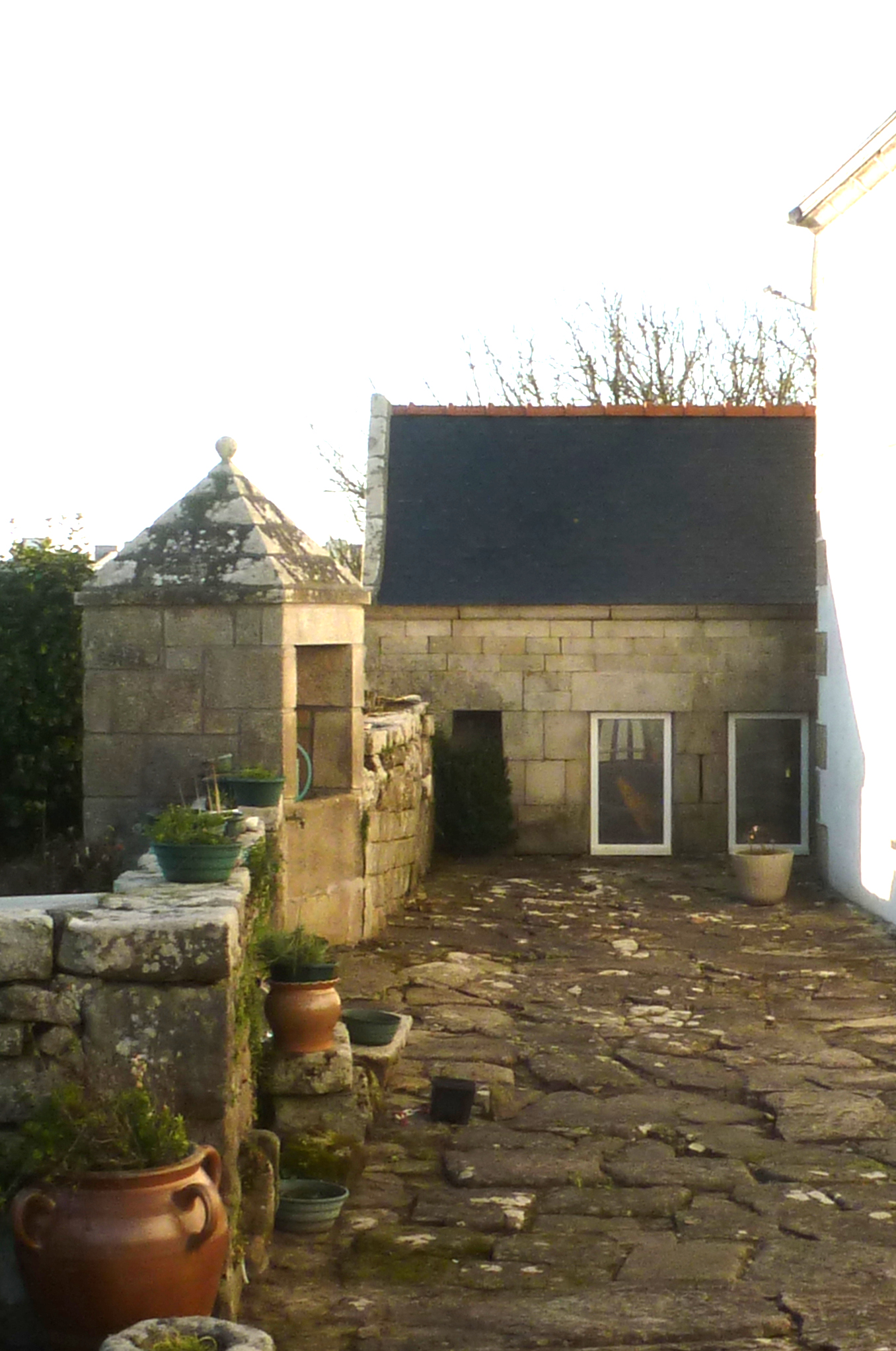 Dépendances agricoles : puits et crèches à cochons en pierres de taille.