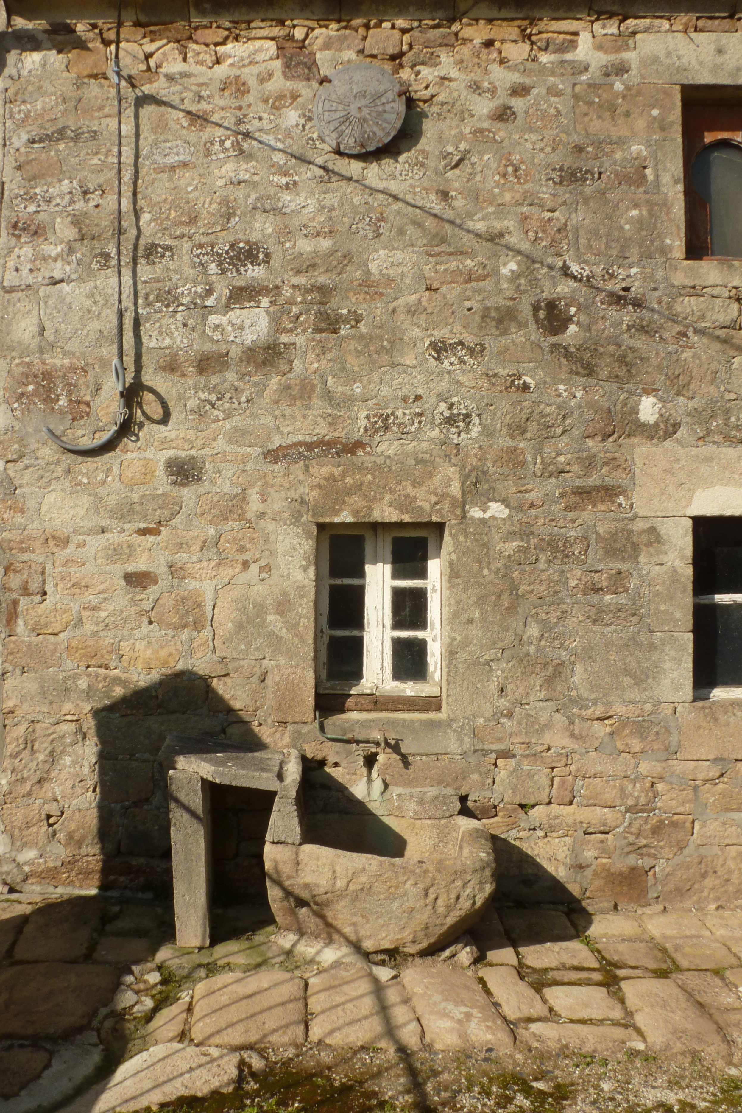 Kerspern, ferme1 datée 1836, vue rapporchée de l'auge et du cadran solaire daté 1768.Immatriculation