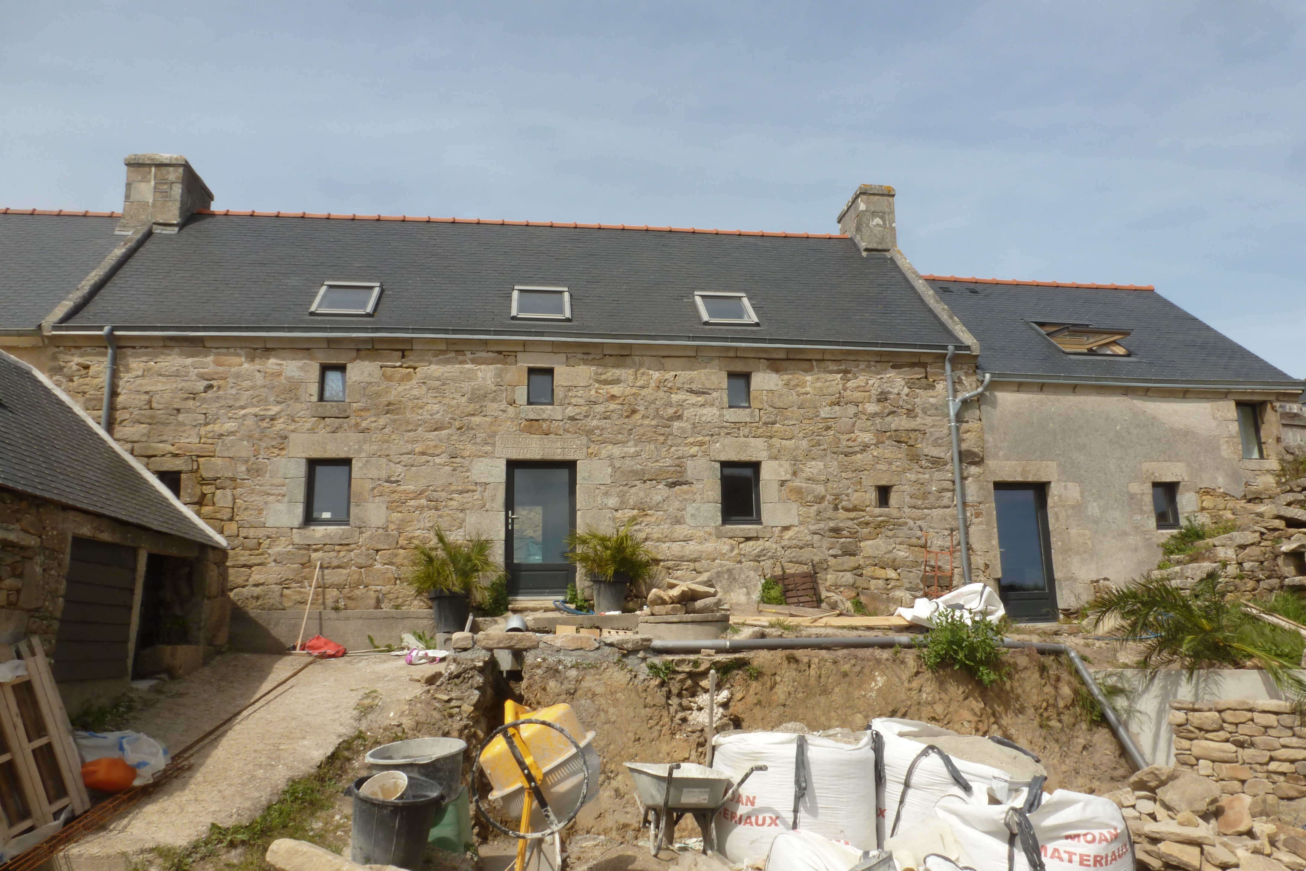 Kerloc'h, ferme 1, élévation antérieure du logis daté 1859 et de l'écurie attenante. (2019)Immatriculation