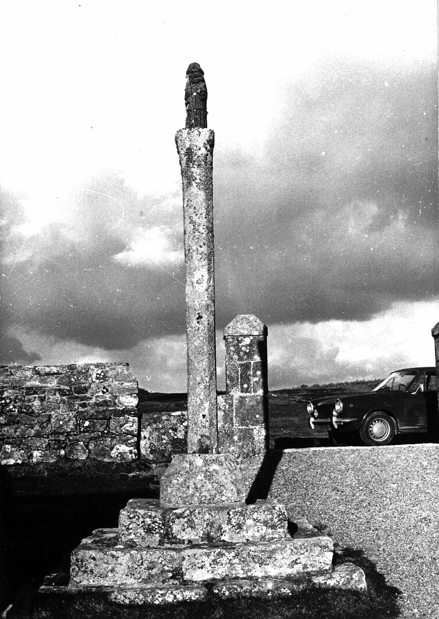 Croix dite "de Saint-They" datée 1772, vue prise de l'ouest dans l'enclos de la chapelle du même nom. (1977)Immatriculation