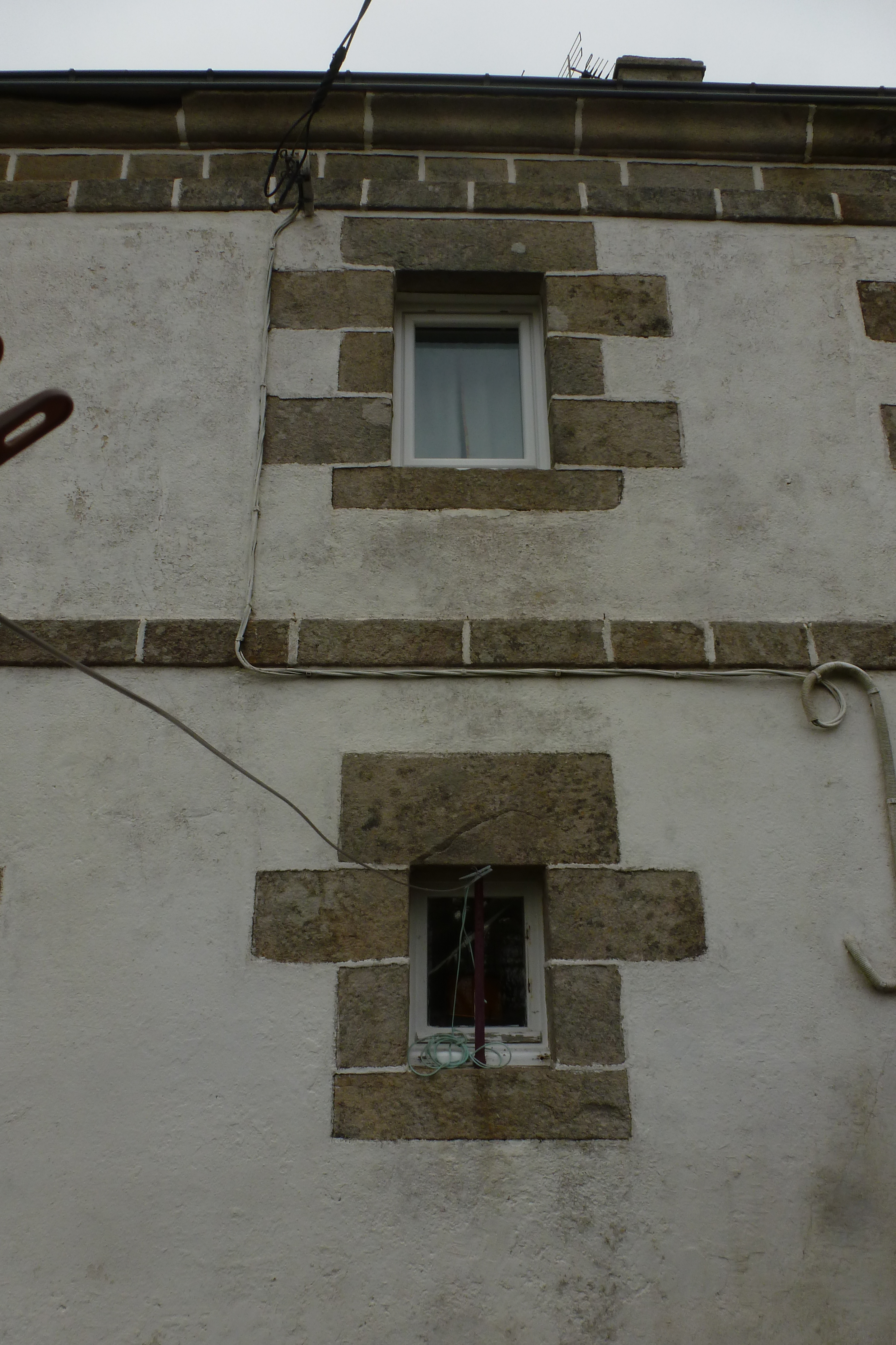 Elévation antérieur du logis, détail des baies, bandeaux et corniche du toit. (2019)Immatriculation