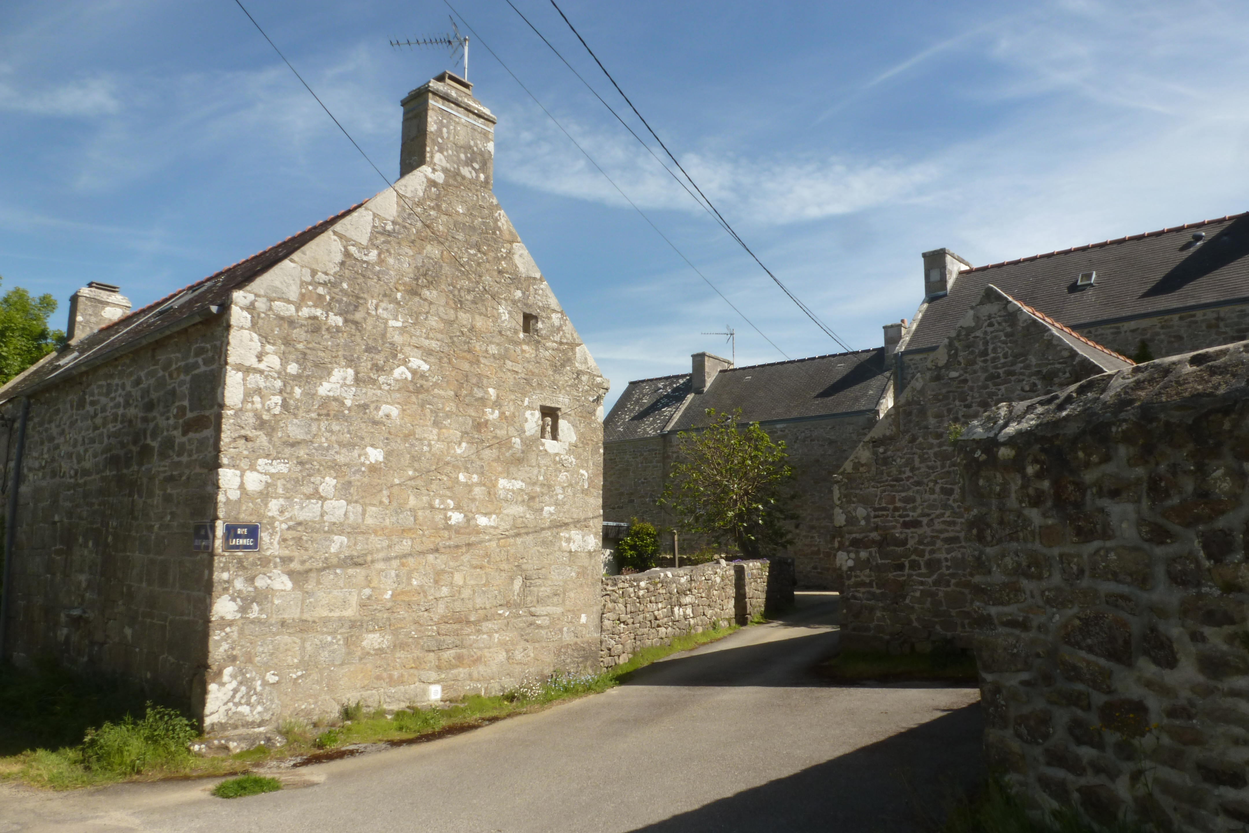 Nord du village. Croisement entre la rue Joliot Curie et la ruelle Laënnec, vue prise du nord.Immatriculation