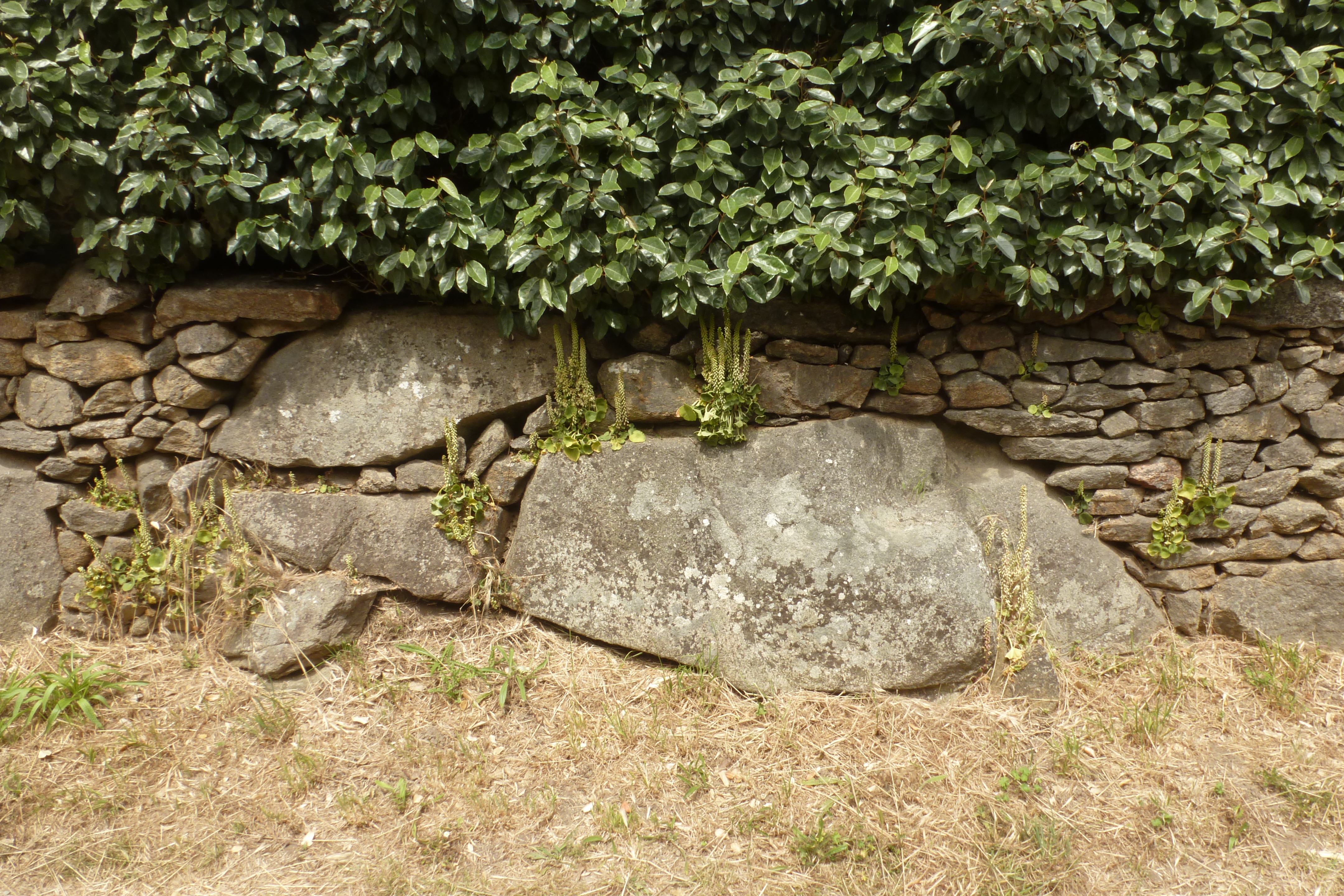 Chemin central, détail d'un muret.Immatriculation